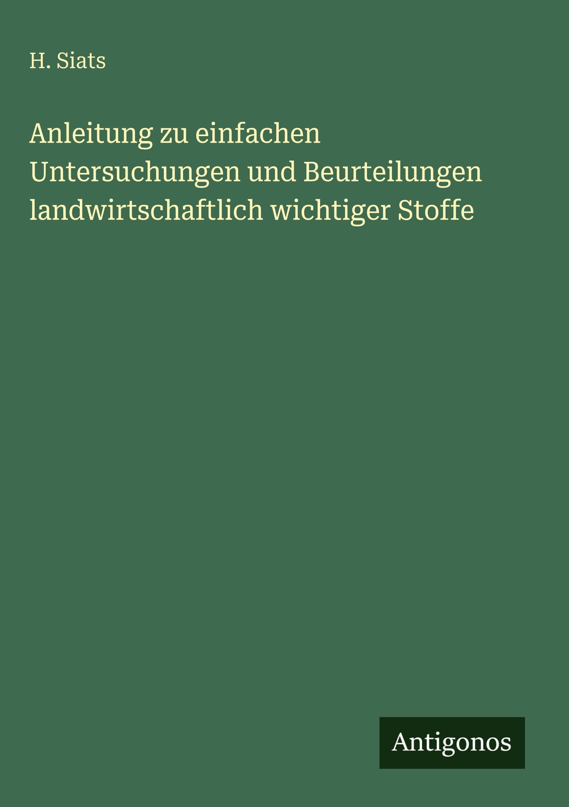 H. Siats: Anleitung zu einfachen Untersuchungen und Beurteilungen landwirtschaftlich wichtiger Stoffe, Gebunden