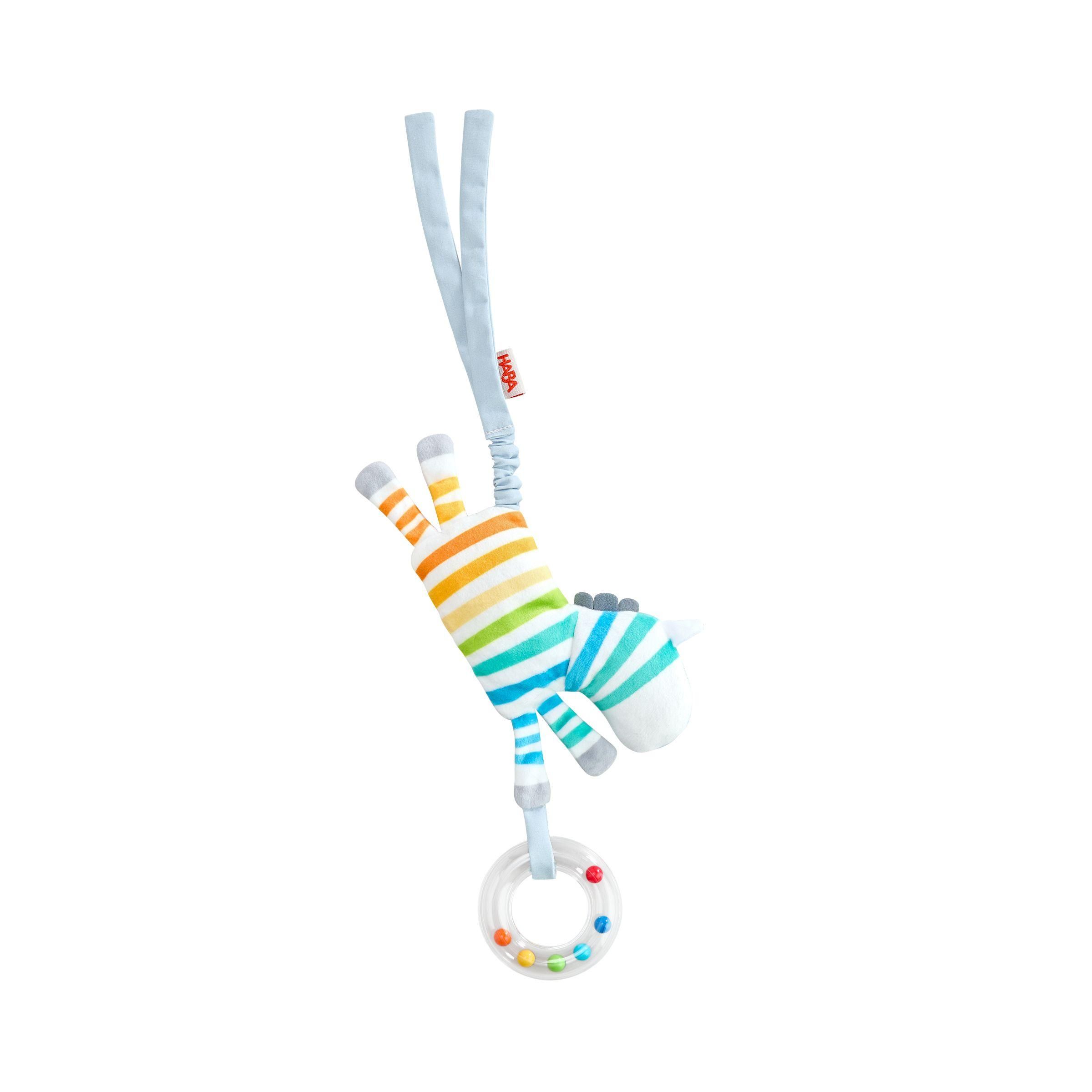 Schon einmal mit einem Zebra abgehangen? Nein? Dann wird es höchste Zeit! Dieser lustige Spielgefährte folgt Babys überall hin und lässt sich dank praktischer Klettschlaufe kinderleicht an Buggy, Babyschale oder Bettchen befestigen. Das akustische Highlight: Der Rasselring weckt die Neugier in den kleinen Weltentdeckern.