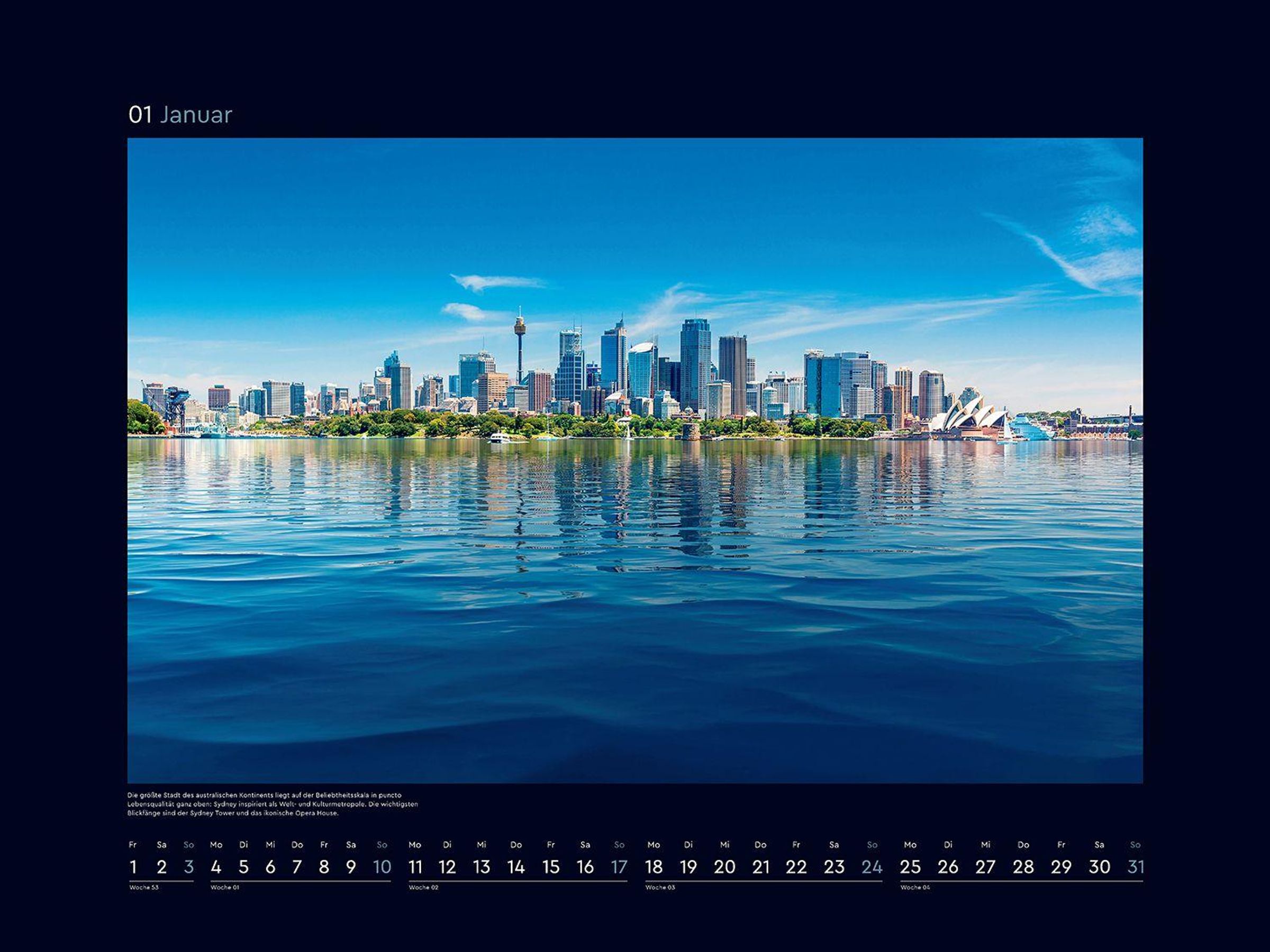 Monat für Monat wartet ein bildstarkes Highlight auf Entdeckung, und ein ansprechendes Kalendarium sorgt für optimalen Nutzen. Die mattschwarzen Rahmen bilden einen starken Kontrast zu den brillanten Fotografien.