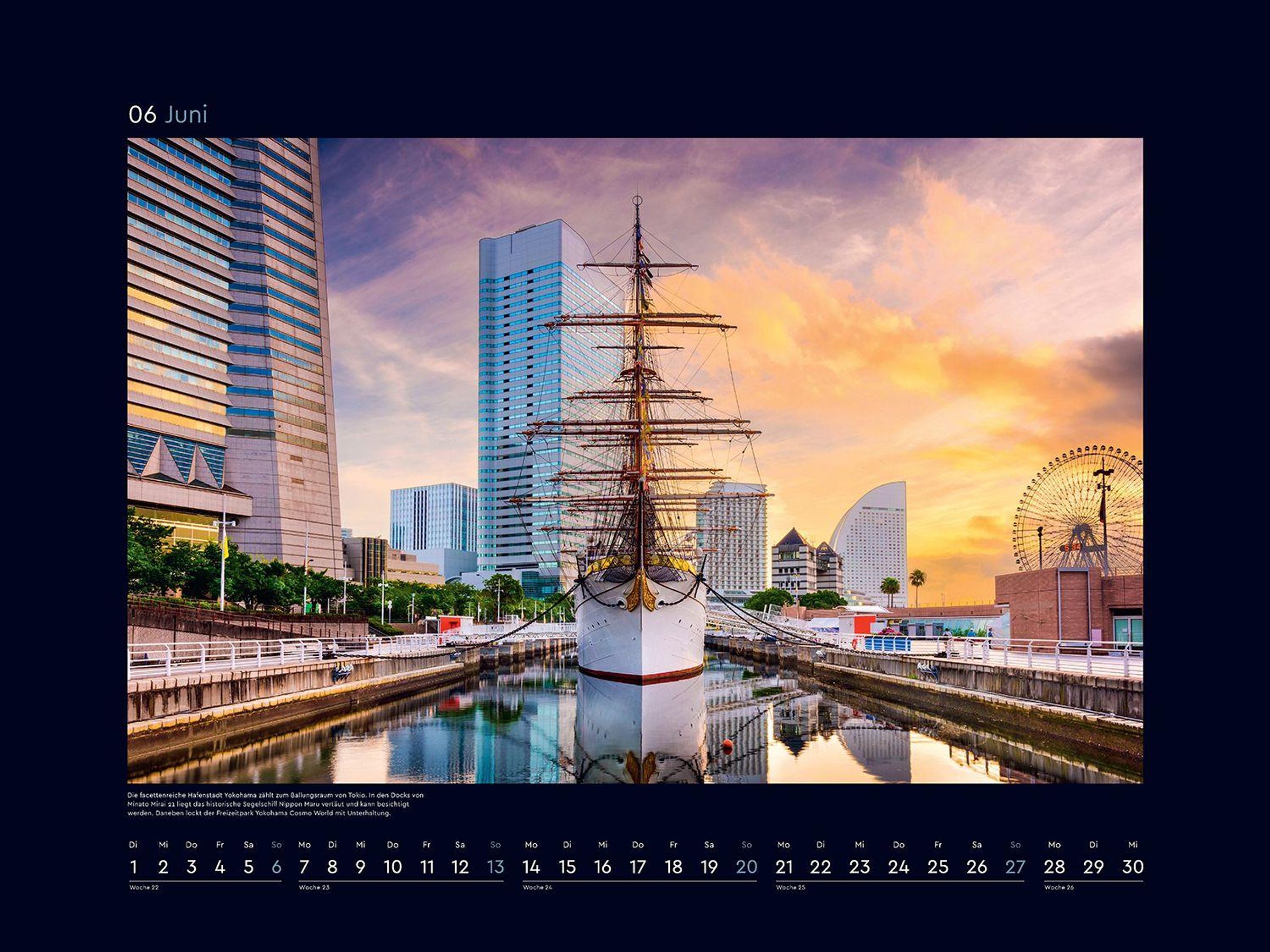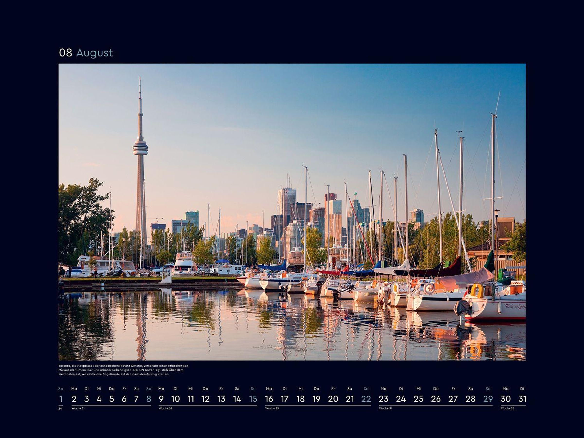 Mit zwölf herausragenden Fotografien schmückt dieser opulente, großformatige KUNTH Wandkalender "Hafenstädte" für 2027 in edlem Design jedes Zimmer - egal ob im Büro, im Home-Office oder in Wohnräumen. In Hafenstädten vermengen sich Kulturen und Traditionen, vermischen sich Handel und repräsentativer Prunk, über allem weht ein Hauch von Ferne. Für Kreuzfahrer und Hobbykapitäne beginnt die nächste Seereise und das Ankommen im Kopf.