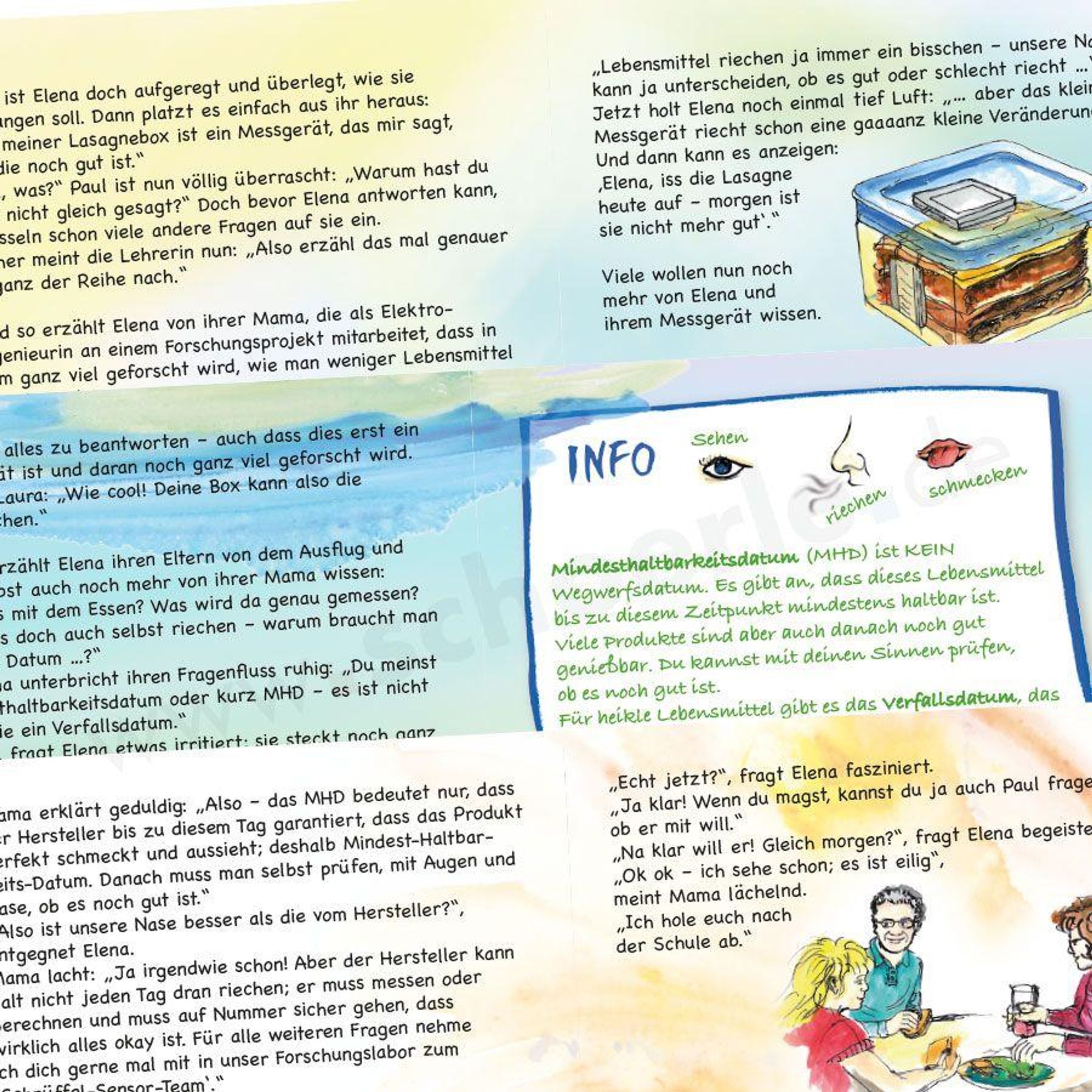 Mit Hilfe von Elenas Mama und ihrem Team im Forschungslabor erfahren die Kinder mehr über die Entwicklung von Schnüffel-Sensoren und wie diese helfen können, die Zukunft unserer Ernährung zu gestalten.
