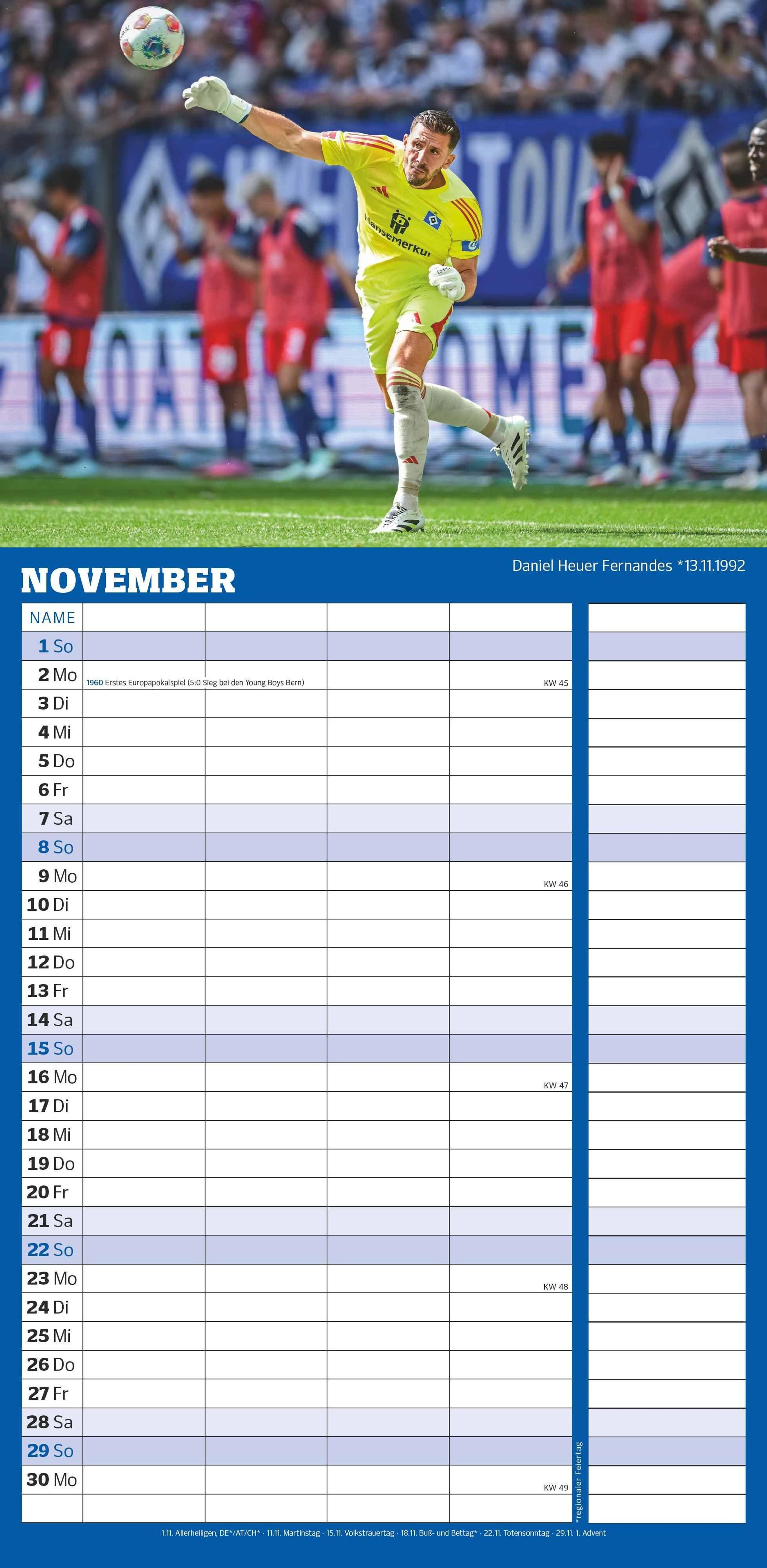 Offizieller Fankalender: 12 Monatsblätter mit eindrucksvollen HSV-Spielerszenen