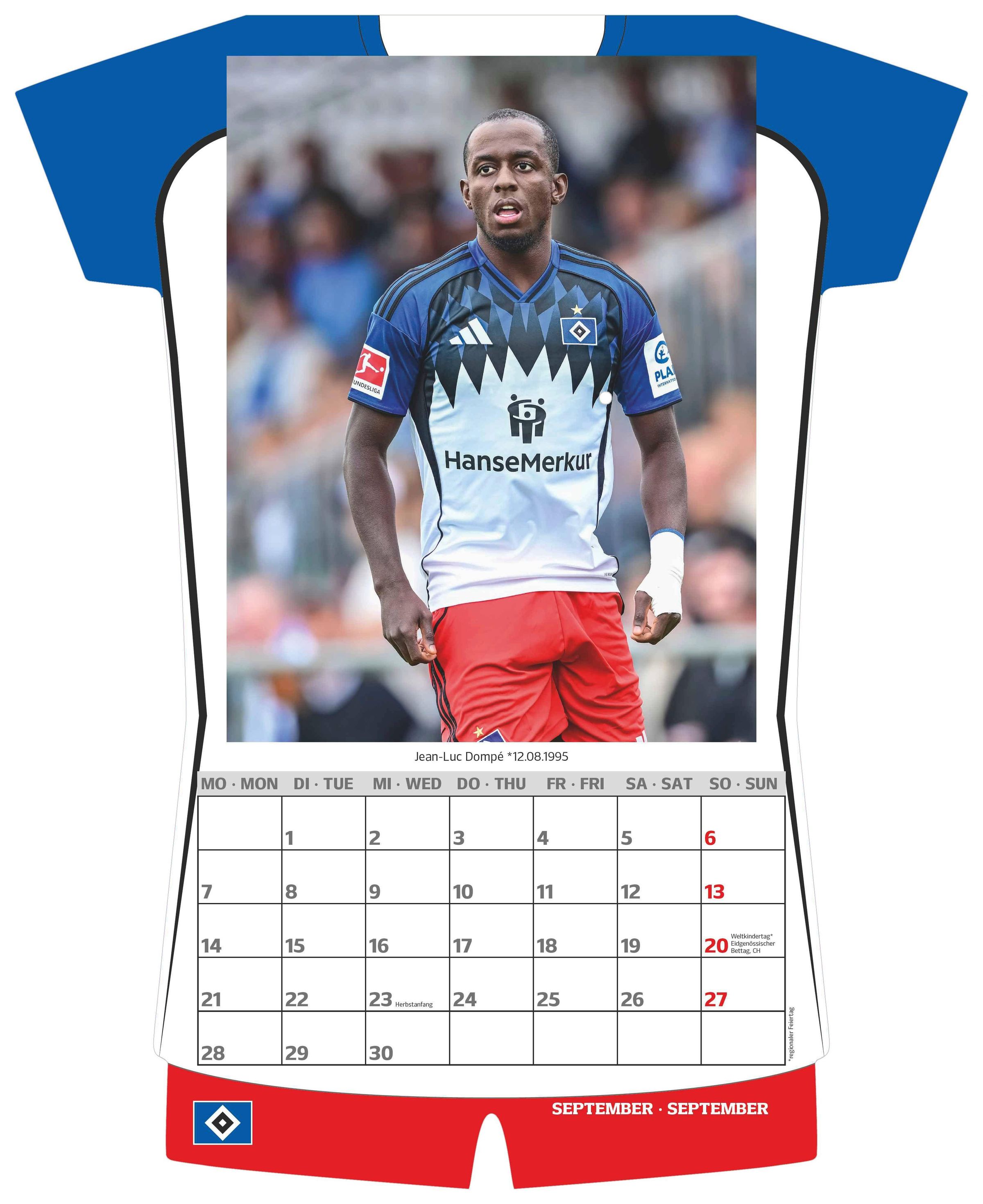 Der Hamburger SV Trikotkalender 2026 bringt die Raute in origineller Form an die Wand. In Trikotoptik gestaltet, zeigt er Monat für Monat faszinierende Fotografien der spannendsten Momente der HSV-Profis und ist damit ein Muss für alle treuen Fans.