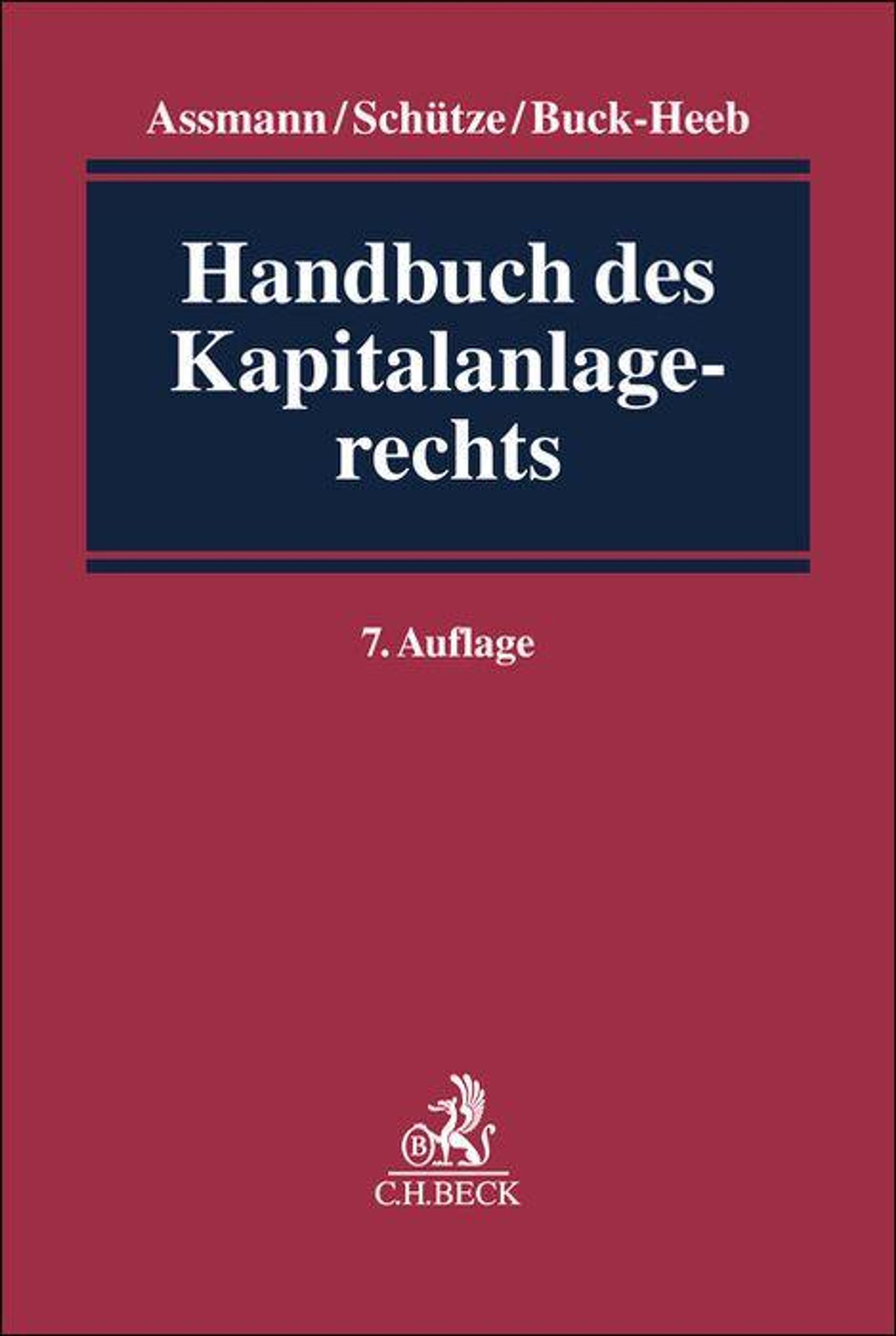Covertext: "Assmann/Schütze/Buck-Heeb, Handbuch des Kapitalanlagerechts, 7. Auflage." Dunkelblaues Feld auf rotem Hintergrund., Buch