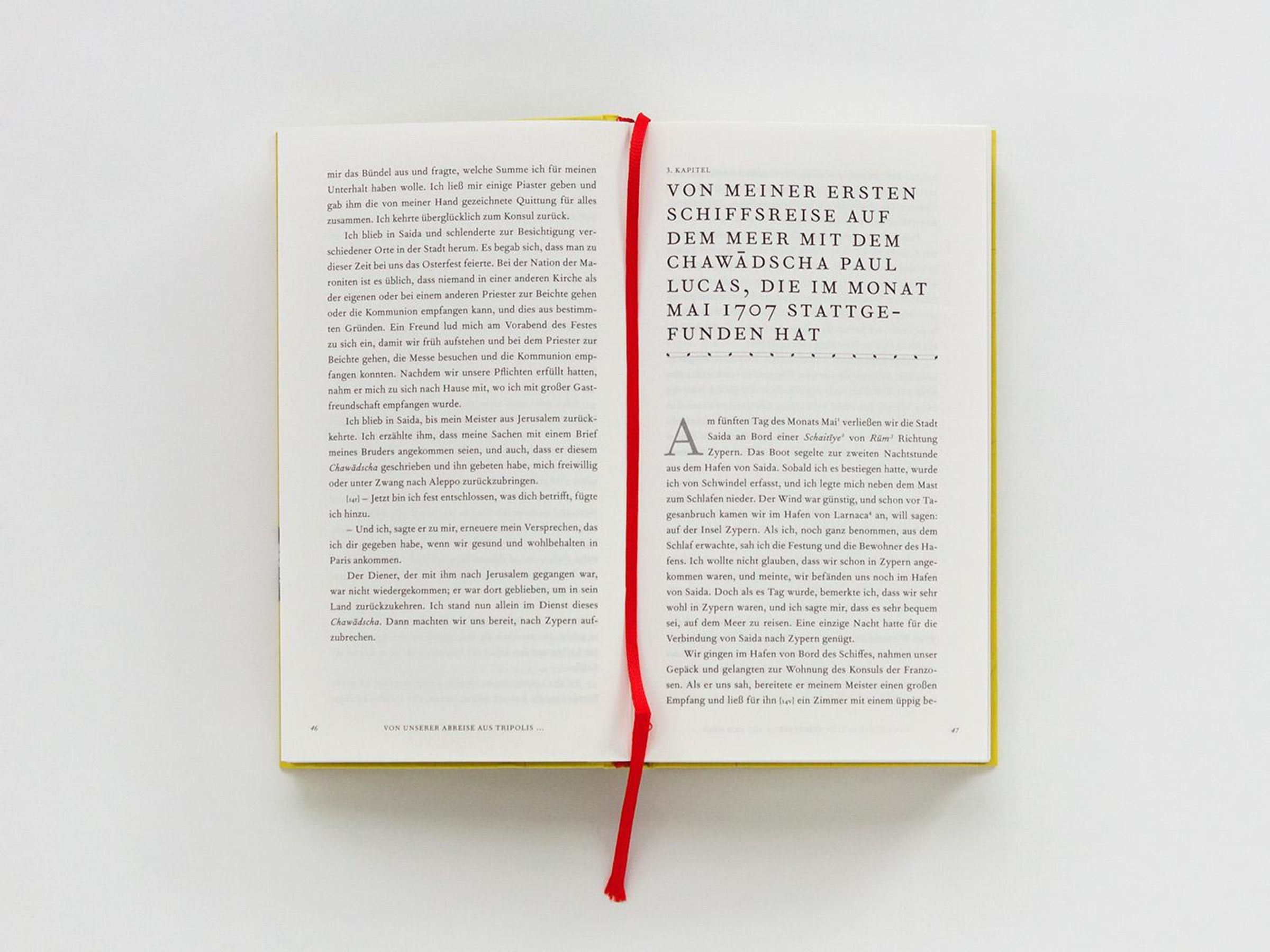 Der französische Reisende Paul Lucas trifft 1707 in Aleppo auf den zwanzigjährigen Hanna Diyâb. Er wird von Lucas eingestellt und begleitet diesen auf der Heimreise nach Frankreich; ihre Route führt sie von Aleppo über Tripolis, Saida, Zypern, Ägypten, Libyen, Tunis nach Livorno, Genua und Marseille, von dort durch das Rhônetal nach Paris. Anschaulich und lebendig beschreibt Diyâb Begegnungen und Gespräche, Karawanenzüge und Angriffe von Korsaren, er nimmt Legenden und Heiligengeschichten in seinen Bericht auf. Hanna Diyâb wird in den Gemächern Ludwigs XIV. empfangen. Die Beschreibung seines Aufenthalts am Hof und in der Stadt Paris gehört zu den Höhepunkten seines Reiseberichts. Dort trifft er auch auf den Orientalisten Antoine Galland, den Herausgeber und Übersetzer von Tausendundeiner Nacht, dem er, neben anderen, die Geschichten von >>Ali Baba<< und >>Aladdin<< erzählt, die dieser in seine berühmte Märchensammlung aufnehmen wird. Mit ihnen hat sich Hanna Diyâb bereits vor über dreihundert Jahren anonym in das europäische Kulturgedächtnis eingeschrieben.