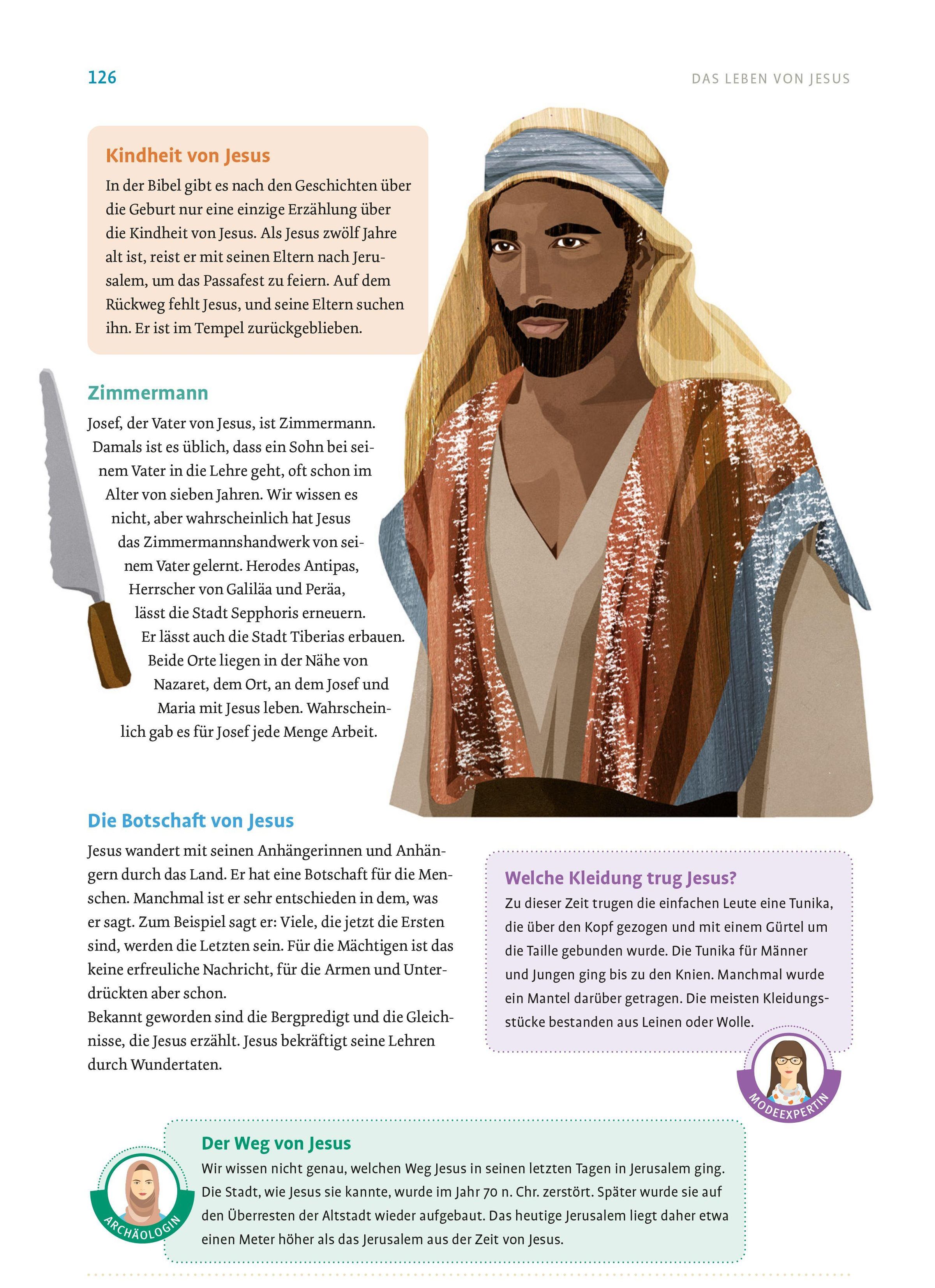 Dieses Wissensbuch ist der ideale Begleiter für Kinder und Jugendliche ab 8 Jahren, die mehr über die spannende Welt der Bibel erfahren wollen. In übersichtlichen Steckbriefen werden zentrale biblische Figuren vorgestellt, ergänzt durch anschauliche Karten, Zeitleisten und eine Fülle an Hintergrundinformationen. Dabei geben die unterschiedlichsten Wissensprofis spannende Einblicke in die Welt der Bibel: Hebräische Begriffe werden aufgeschlüsselt, archäologische Funde dokumentiert, Essgewohnheiten beleuchtet und die Mode zur Zeit des Alten und Neuen Testaments unter die Lupe genommen.