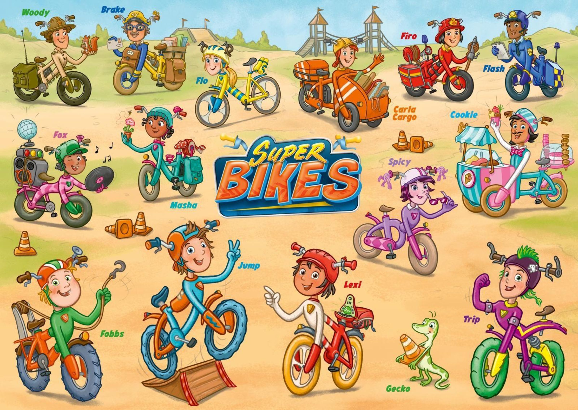 Fahrräder haben für Kinder von 2 bis 8 Jahren eine große Bedeutung. Sie sind Begleiter, öffnen Welten, bringen Dynamik und Mobilität. Und endlich gibt es rund um Fahrräder eine eigene Fantasy-Welt - mit den liebenswerten und lebendigenSUPERBIKES ! MountainbikeJump , dem Rennrad Flo , dem Hollandrad Masha , dem Lastenrad Carla , dem PostradBrake, dem flat-tyre-bikeFox und vielen anderen.