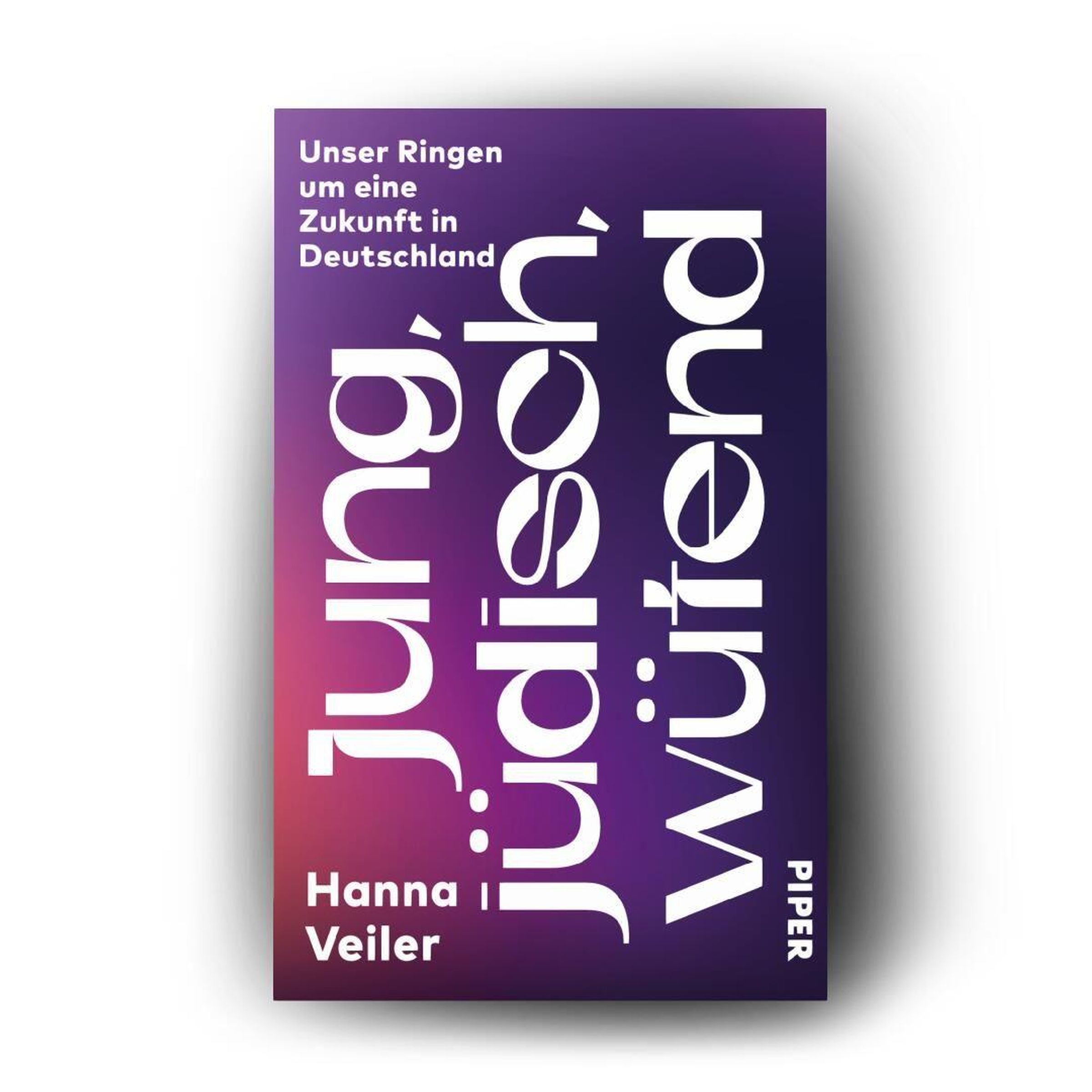 Schriftzug: "Unser Ringen um eine Zukunft in Deutschland", "jung. jüdisch. würgend", "Hanna Veiler", "Piper". Hintergrund in Lila-Tönen., Buch