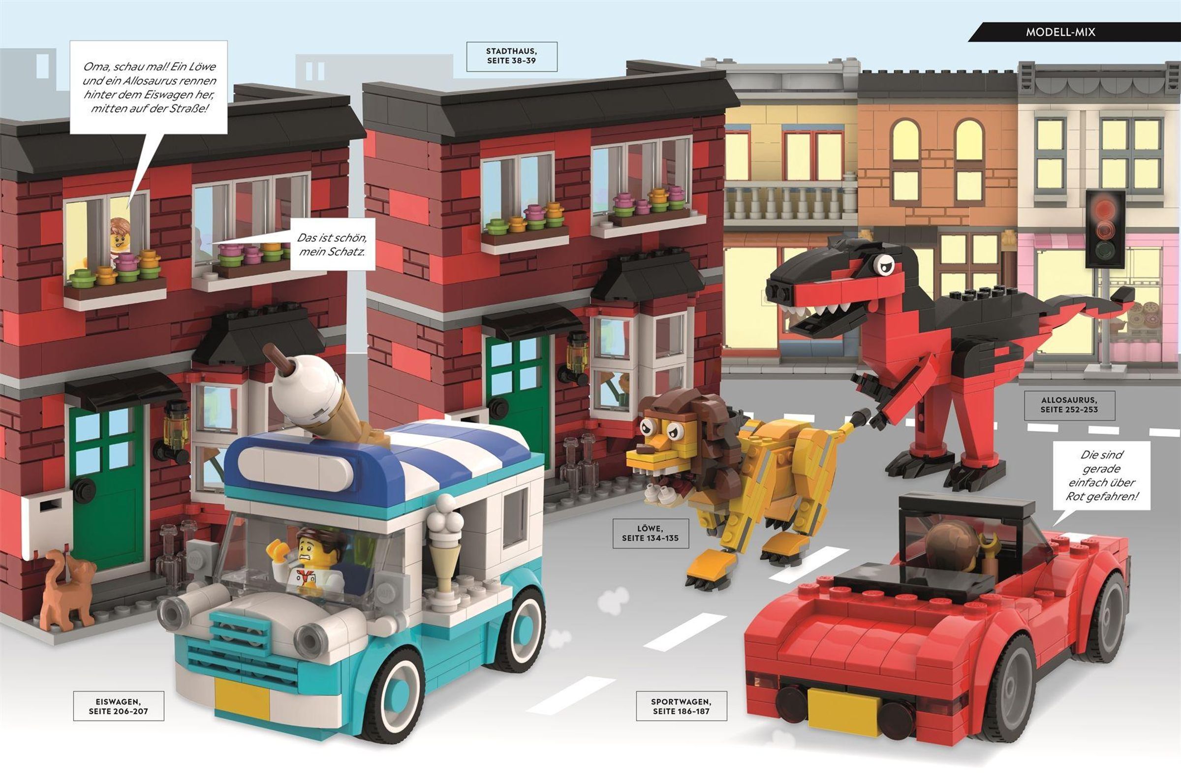 Vom Roboterpferd über schnelle Raketenautos bis zum gigantischen T-Rex: Dieses umfangreiche LEGO Ideen-Buch ist das perfekte Werkzeug für neue Bauabenteuer! Klar gegliedert in die 5 Kapitel Häuser, Tiere, Autos, Dinosaurier und Roboter finden LEGO Fans ab 6 Jahren über 200 kreative Modelle zum Nachbauen und Weiterentwickeln .
