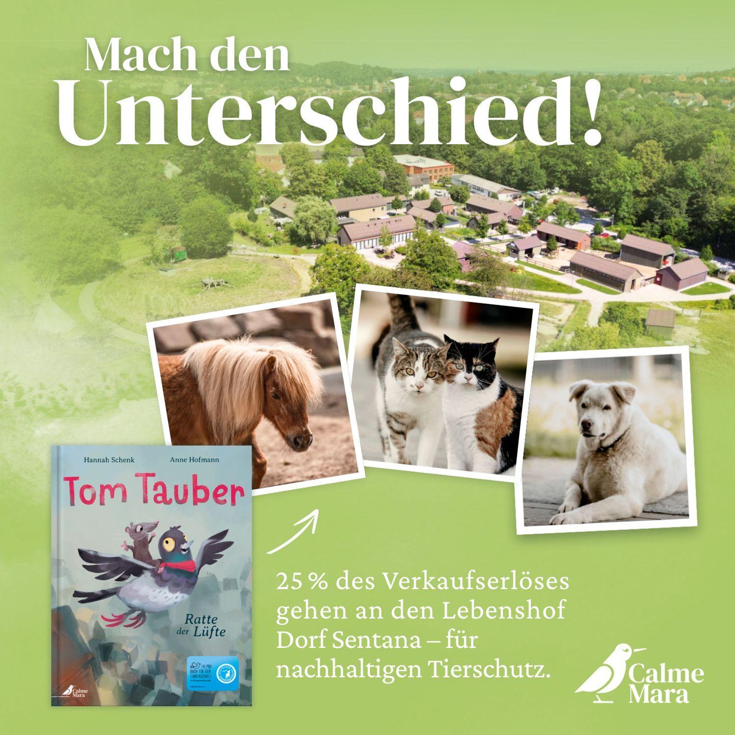 CalmeMara-Bücher tun Gutes: Mit dem Kauf dieses Buches unterstützt du das Stadttaubenprojekt #respekttaube des Deutschen Tierschutzbundes sowie die Tiere des Begegnungs- und Lebenshofs Dorf Sentana und die sozialen Projekte vor Ort.