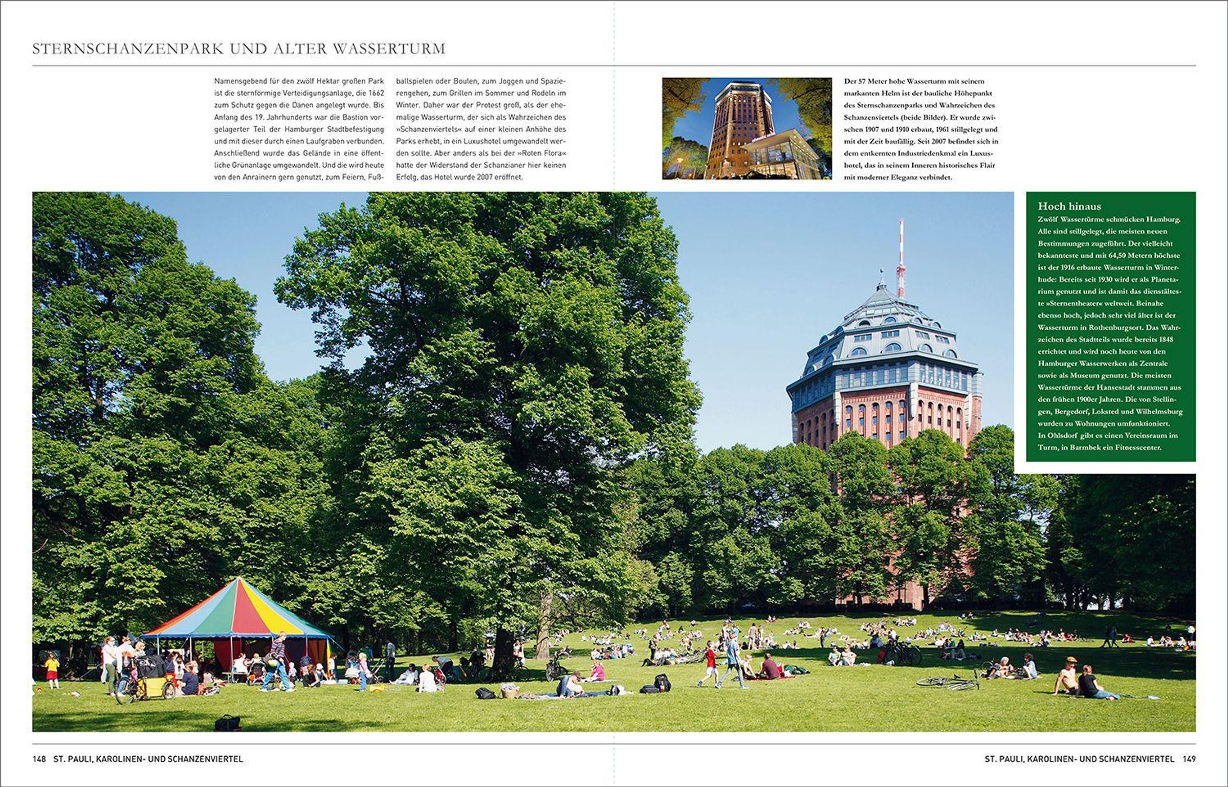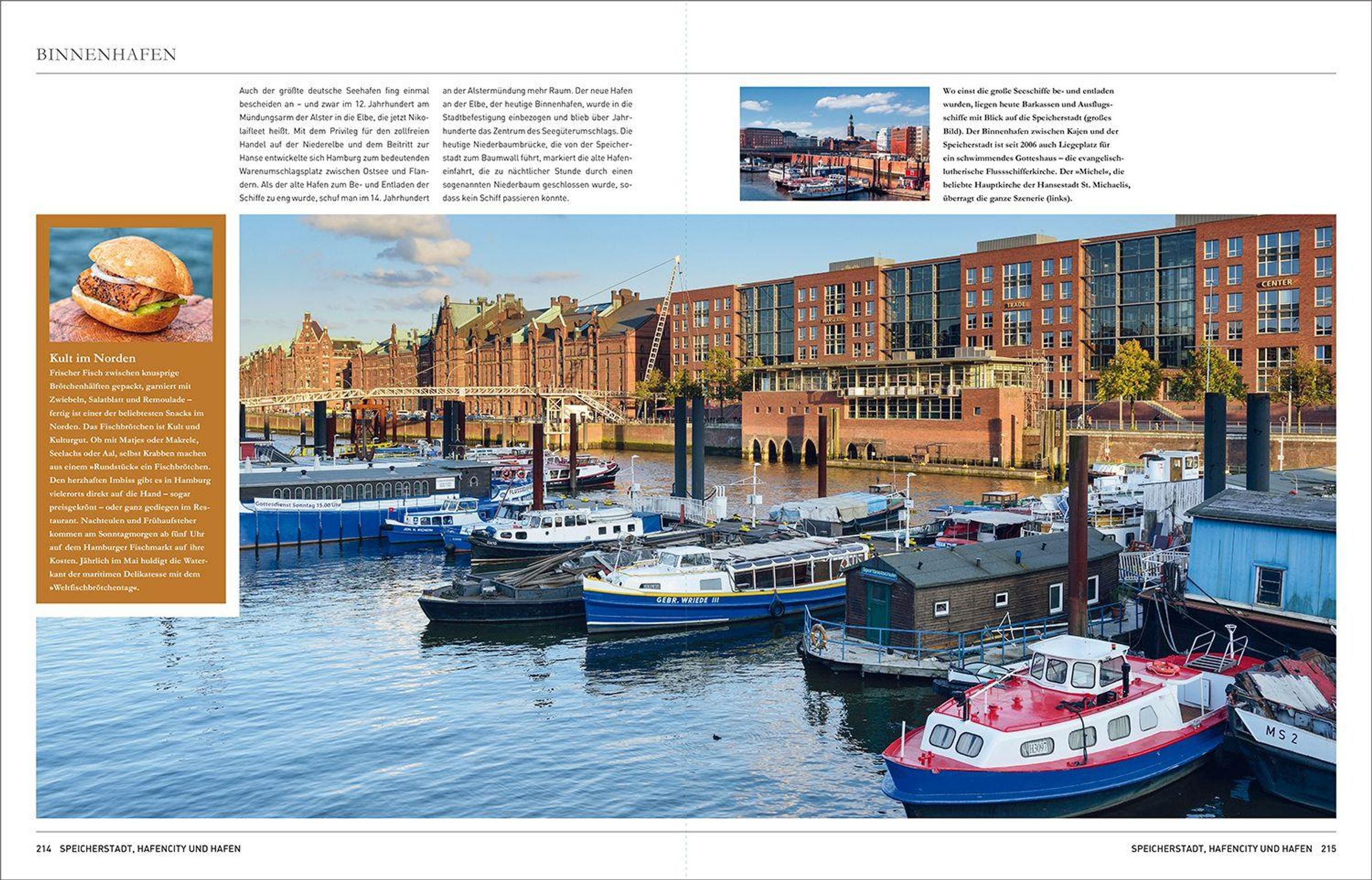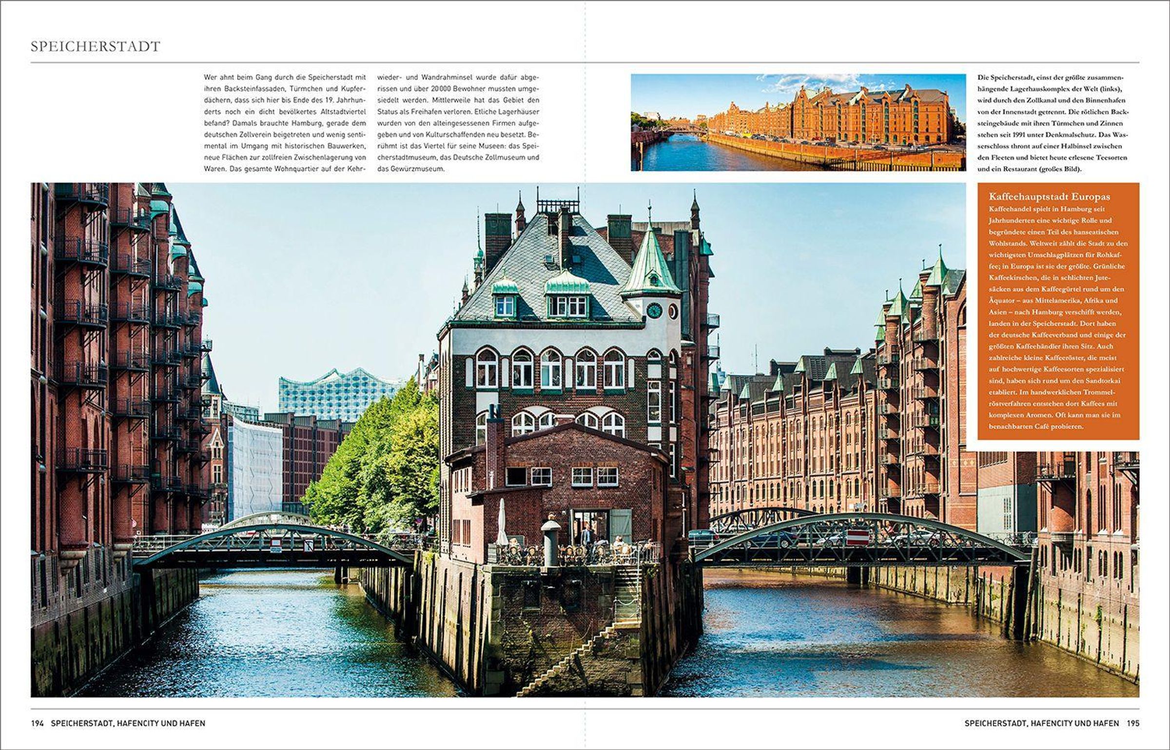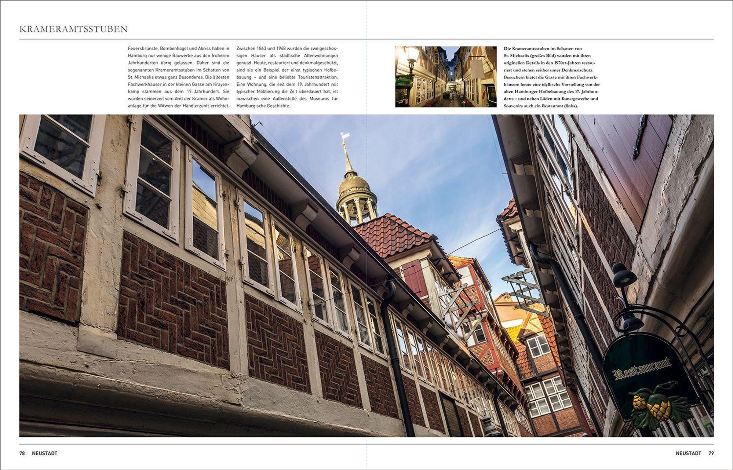 Das entspannte Treiben, der stete Hauch von Meer in der Luft und eine Architektur, die alt und modern verbindet - all das sind Gründe, um die Elbmetropole Hamburg ins Herz zu schließen. Wer an Hamburg denkt, dem kommen wohl zuerst Hafen, Landungsbrücken und Alster in den Sinn. Vielleicht denkt man auch an den 'Michel', das Wahrzeichen der Hansestadt, an den Fischmarkt, den HSV oder FC St. Pauli, die noble Elbchaussee und die legendäre Reeperbahn. Dass es noch mehr zu entdecken gibt als Elbphilharmonie, Speicherstadt & Co., zeigt dieser Bildband Hamburg: zum Beispiel Jugendstilfassaden in Eppendorf, die Krameramtsstuben oder ein Wasserlichtkonzert im Planten un Blomen sowie Orte der Ruhe oder des quirligen Szenelebens.