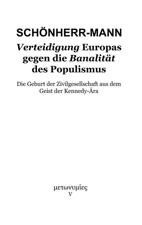 Hans-Martin Schönherr-Mann ist Professor für Politische Philosophie am Geschwister Scholl Institut der Ludwig-Maximilians-Universität München. Zahlreiche Buchveröffentlichungen und Beiträge für den Rundfunk und für Zeitungen.Anmerkungen: