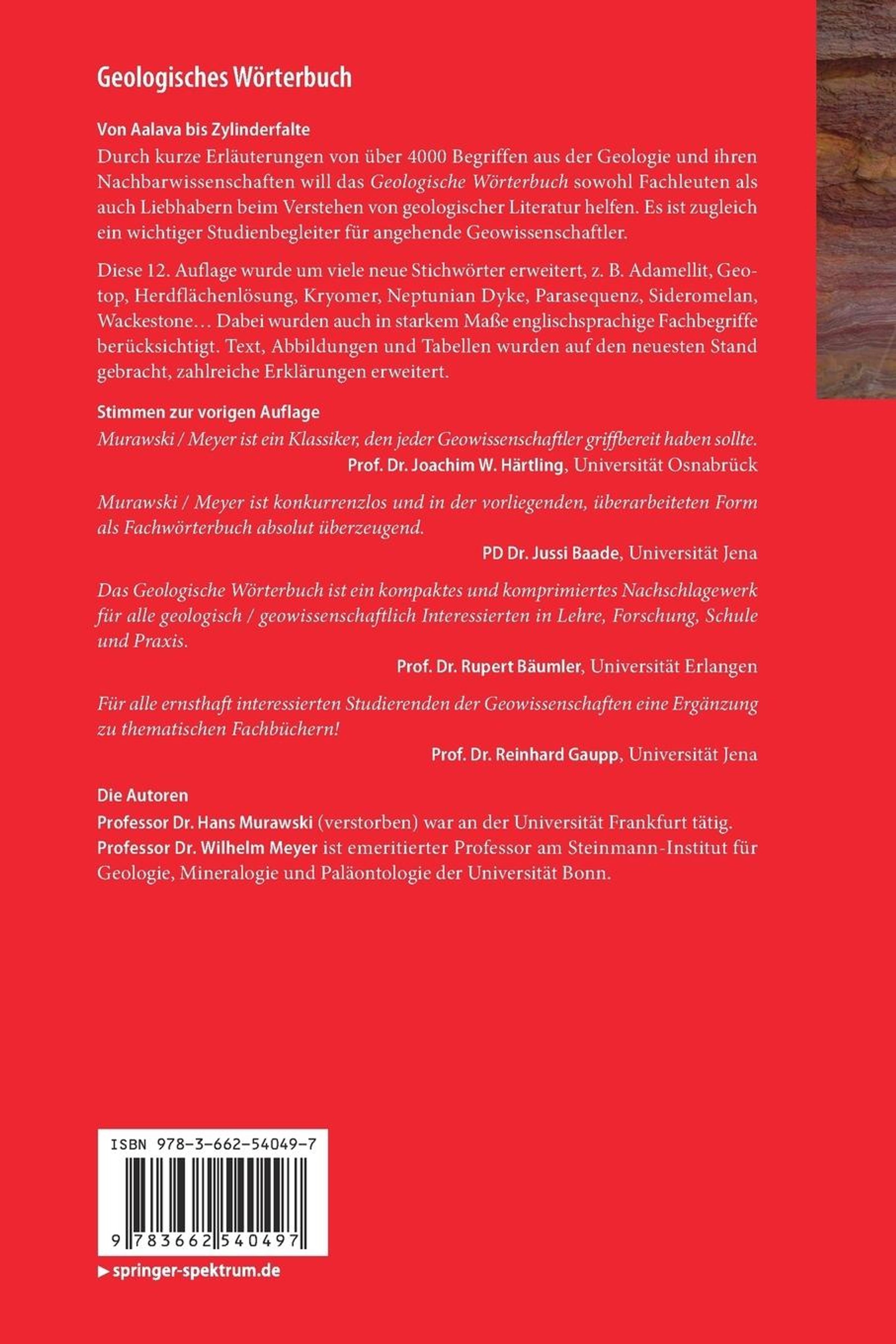 Kurze Erläuterungen von über 4000 Begriffen aus der Geologie und ihren Nachbarwissenschaften. Für Fachleuten wie auch Liebhaber eien wichtige Hilfe beim Verstehen von geologischer Literatur. Zugleich ein wichtiger Studienbegleiter für angehende Geowissenschaftler. Die 12. Auflage wurden um viele neue Stichwörter erweitert. Text, Abbildungen und Tabellen wurden auf den neuesten Stand gebracht. Ein kompaktes Nachschlagewerk für alle geologisch und geowissenschaftlich Interessierten in Lehre, Forschung, Schule und Praxis und eine Ergänzung zu Lehr- und Fachbüchern!
