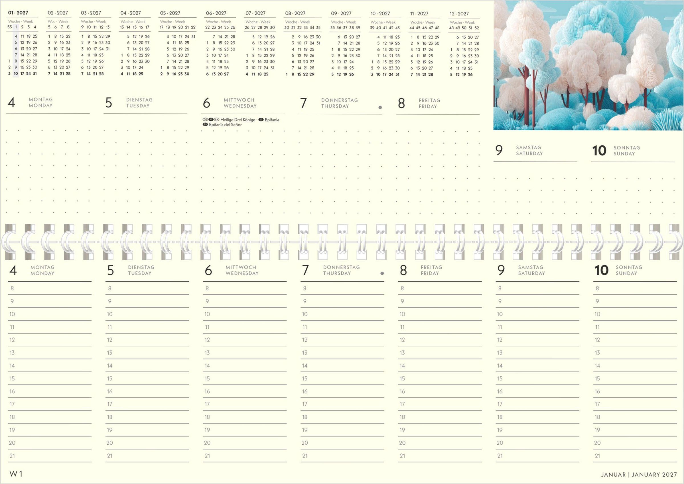 Der GreenLine Happy Vibes Tischkalender 2027 bringt Woche für Woche Lebensfreude, Urlaubslaune und positive Energie direkt auf Ihren Schreibtisch. Mit seiner liebevoll gestalteten Optik wird er nicht nur zum praktischen Helfer, sondern auch zum dekorativen Schmuckstück im Büro oder Homeoffice.