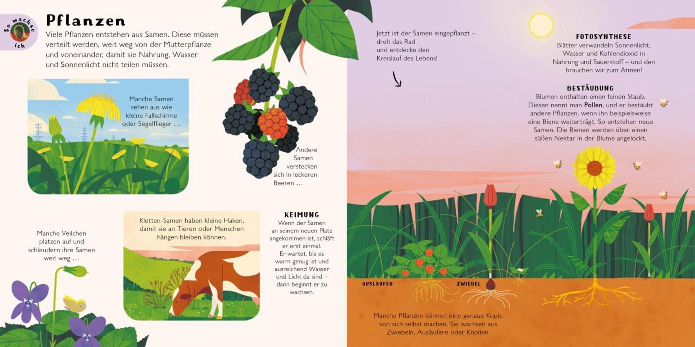 Mit diesem Natur-Pappebuch entdecken kleine und große Forscher*innen den faszinierenden Kreislauf des Lebens von Tieren und Pflanzen. Auf jeder Doppelseite lädt ein drehbares Rad zum Mitmachen ein und zeigt anschaulich, wie alles miteinander verbunden ist. Vielfältige Klappen sorgen für zusätzlichen Spaß und motivieren die Kinder dazu, selbst aktiv zu werden. Die liebevoll geschriebenen Texte geben wertvolle Tipps, wie man Tiere und Pflanzen in der Natur beobachten und schützen kann, und bringen so die Vielfalt der Natur spielerisch näher.