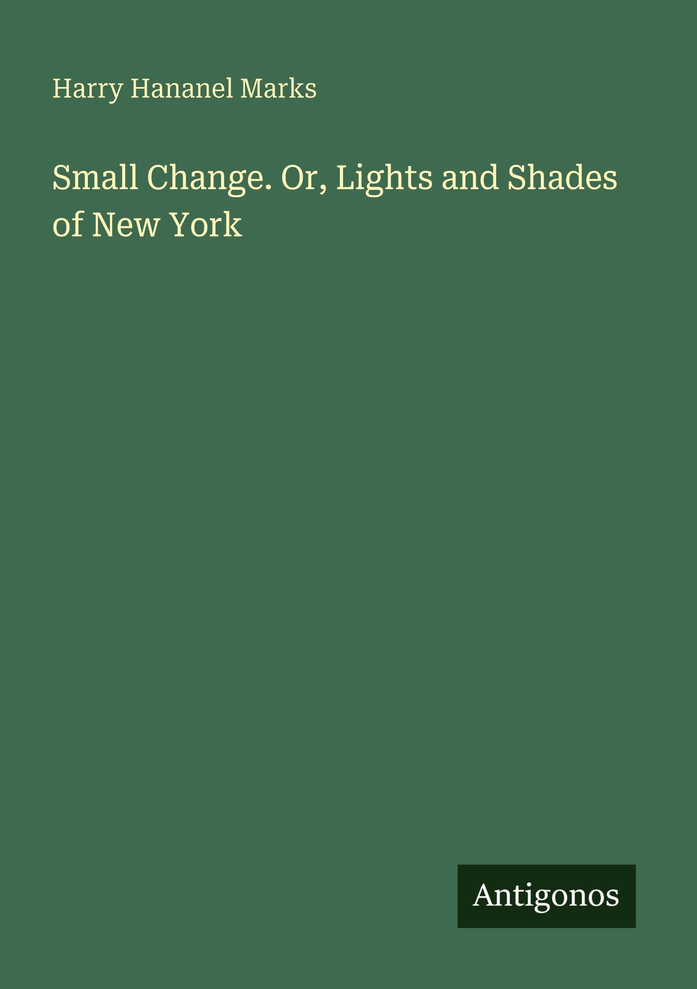 Harry Hananel Marks: Small Change. Or, Lights and Shades of New York, Kartoniert / Broschiert