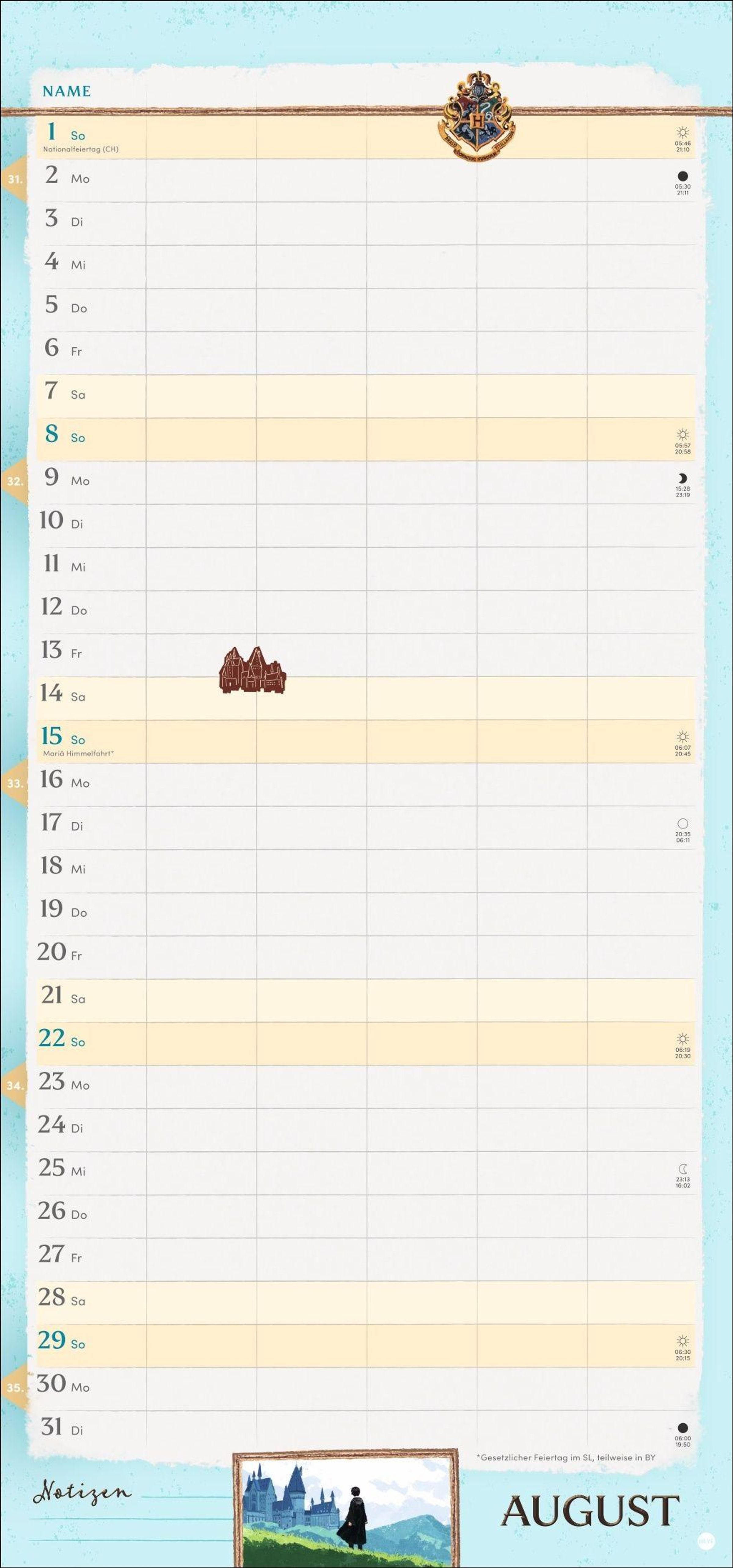 • Magisch viel Überblick über Schulferien, Termine und To-Dos. Familienkalender mit 5 Spalten im Format 21 x 45 cm für große und kleine Hogwarts-Fans