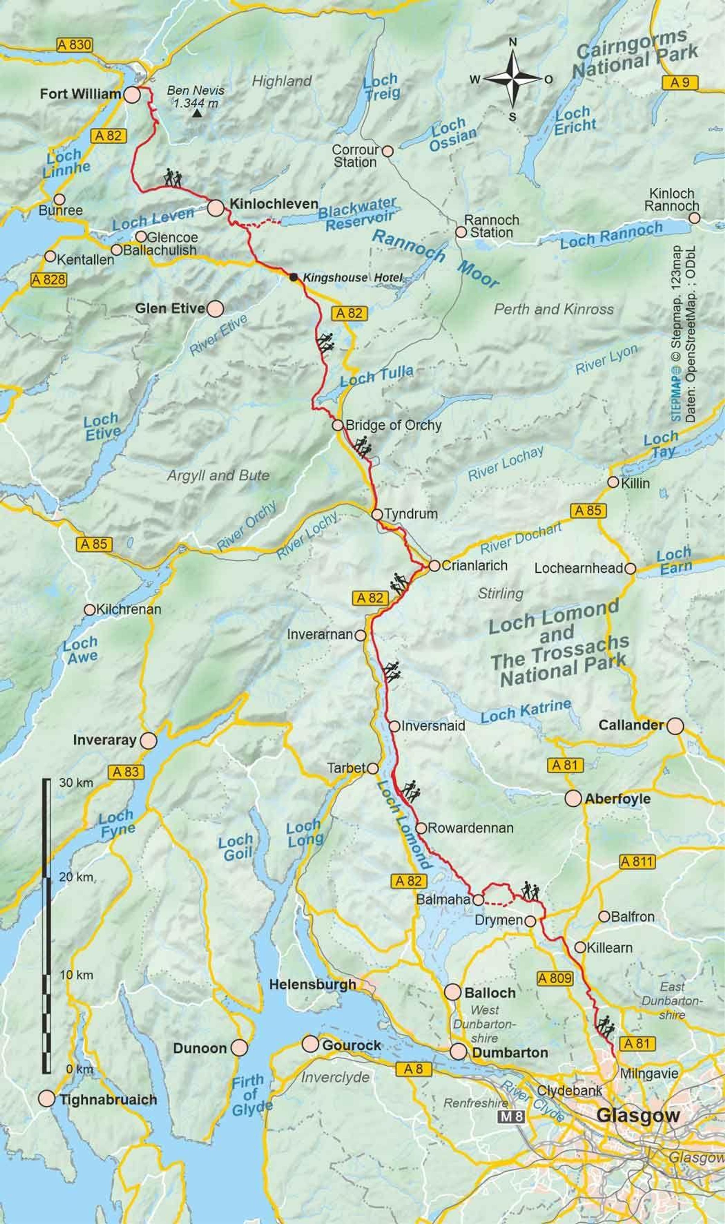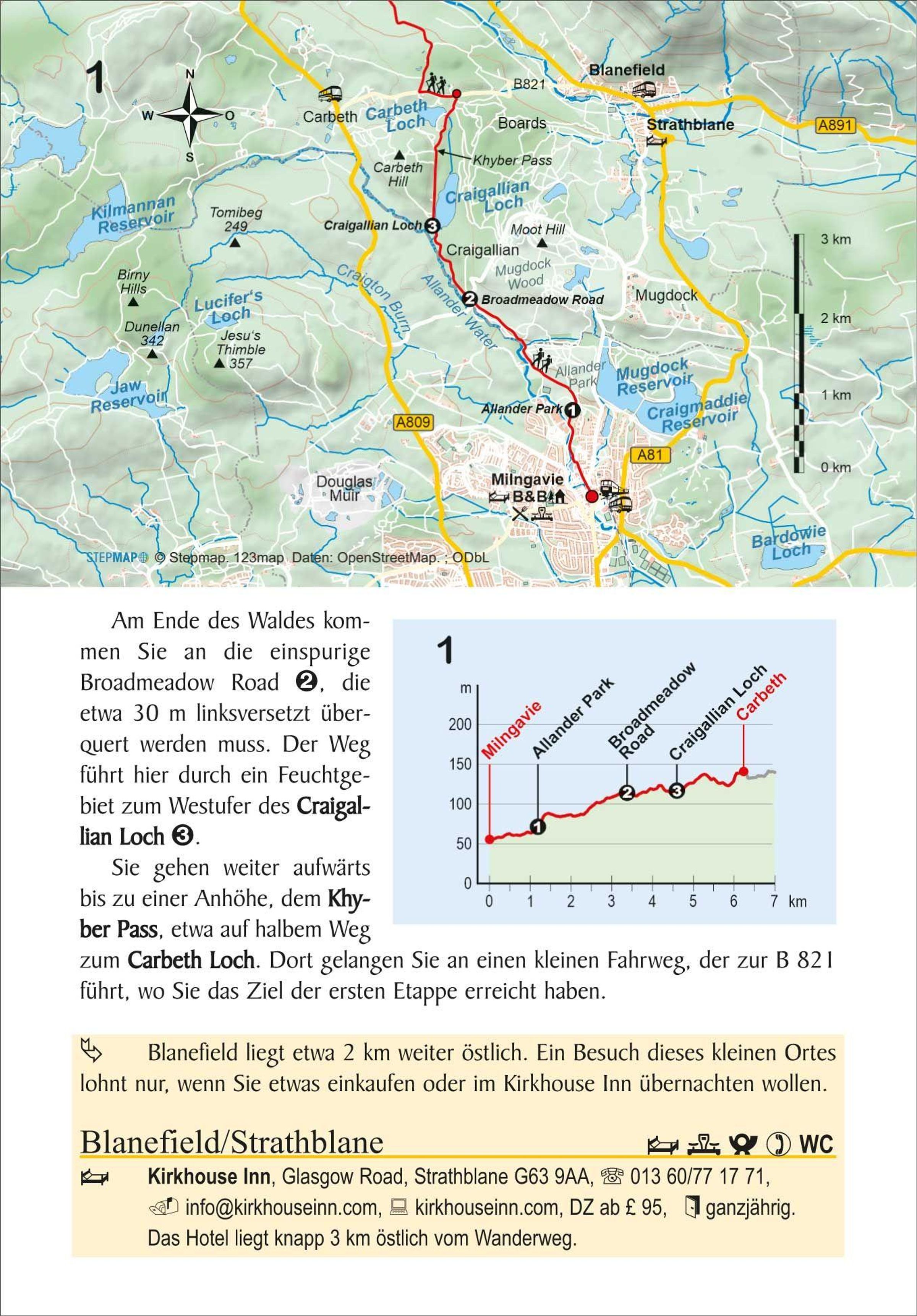 Der West Highland Way ist der schönste Langstreckenwanderweg Schottlands. 155 km führt er durch raues und zerklüftetes Gelände des südlichen und zentralen Hochlands. Es ist eine fantastische, aber streckenweise anstrengende Wanderung. Die Tour wird in 14 Einzeletappen beschrieben, sodass auch Wanderer, die nicht die ganze Strecke laufen wollen, gute Ein- bzw. Ausstiegsmöglichkeiten haben. Jede Etappenbeschreibung umfasst den Wegverlauf, wichtige Tipps wie Übernachtungsmöglichkeiten, Verkehrsverbindungen usw., Informationen zu wichtigen Aspekten von Natur, Landschaft, Kultur und Geschichte sowie eine Beschreibung lohnender Abstecher zu Zielen, die nicht direkt am Weg liegen.