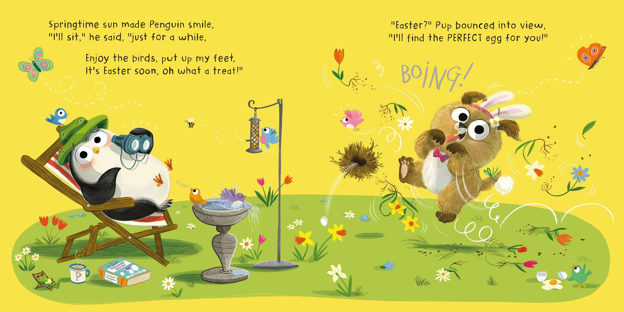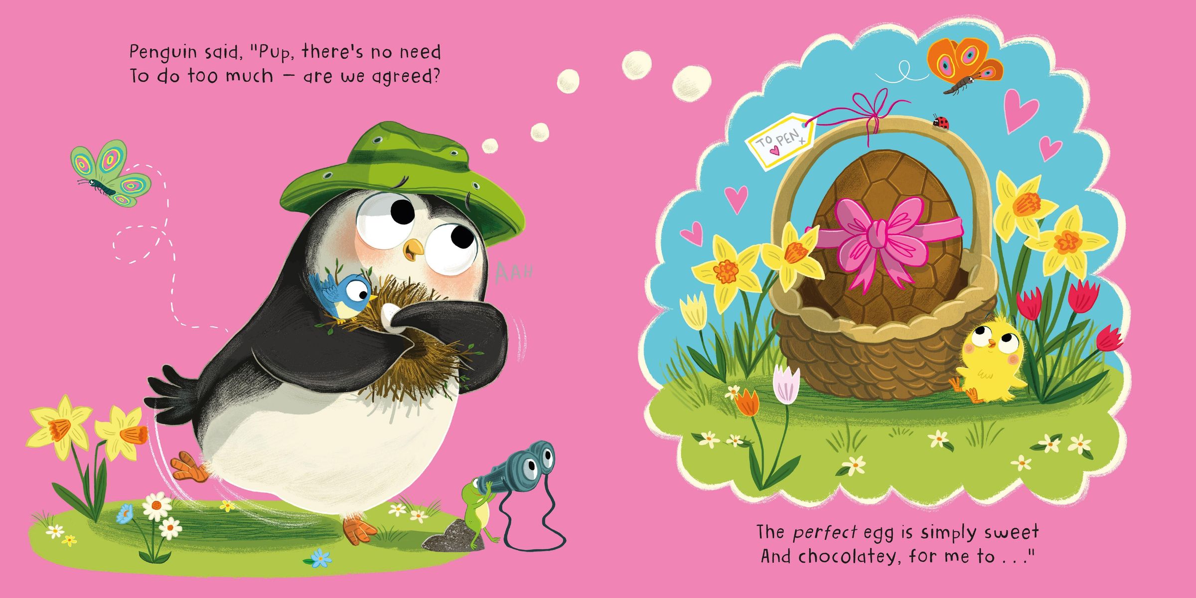 Like lots of friends, Penguin and Pup like VERY different things. Especially when it comes to Easter. All Penguin wants is a perfectly sized chocolate egg to enjoy in the garden. Pup, on the other hand, is thinking: why stop there? What about a Rocket Egg , or an Eggshell Pirate Ship ? It's a recipe for disaster, and lots of laughter.