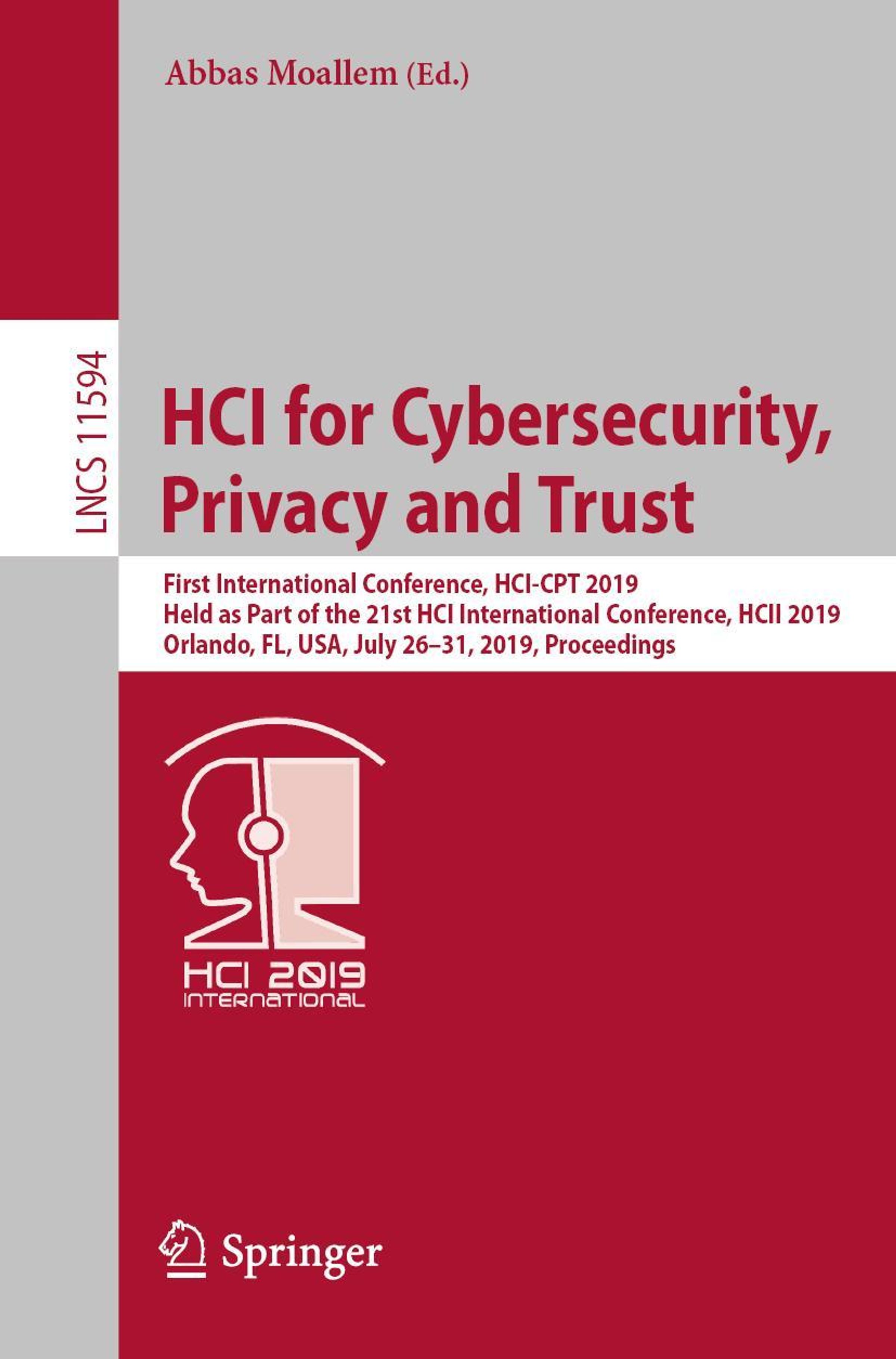 HCI for Cybersecurity, Privacy and Trust, Buch, Buch