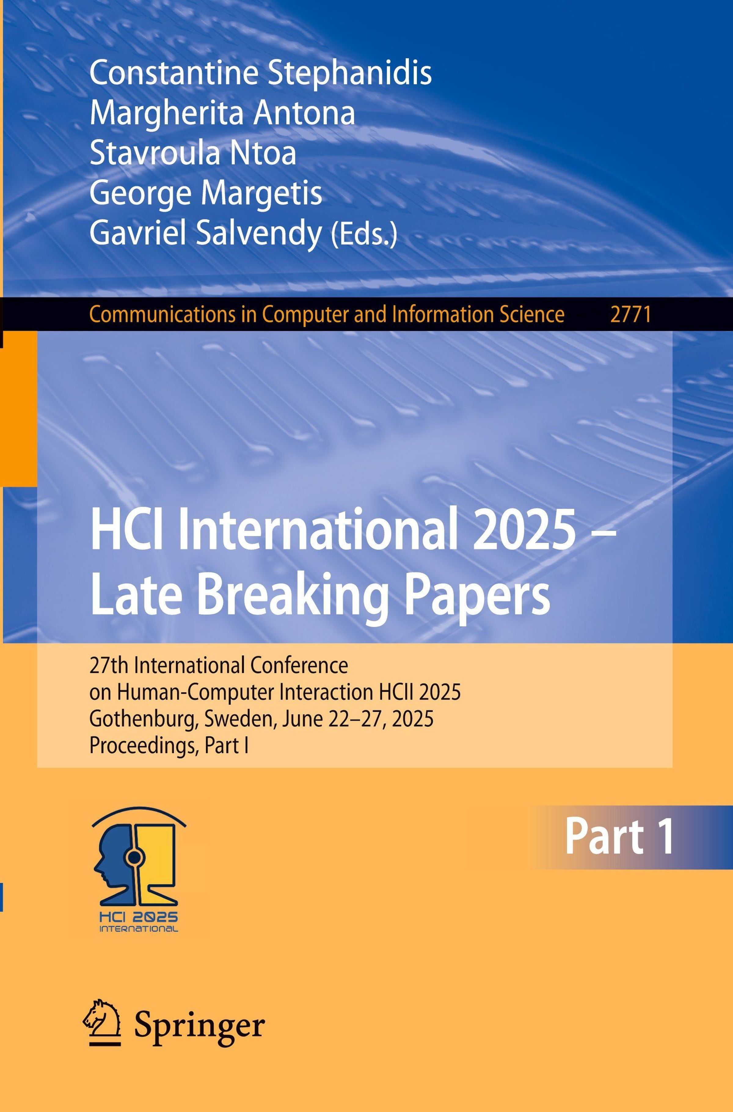 - 27th International Conference on Human-Computer Interaction, HCII 2025, Gothenburg, Sweden, June 22-27, 2025, Proceedings, Part I