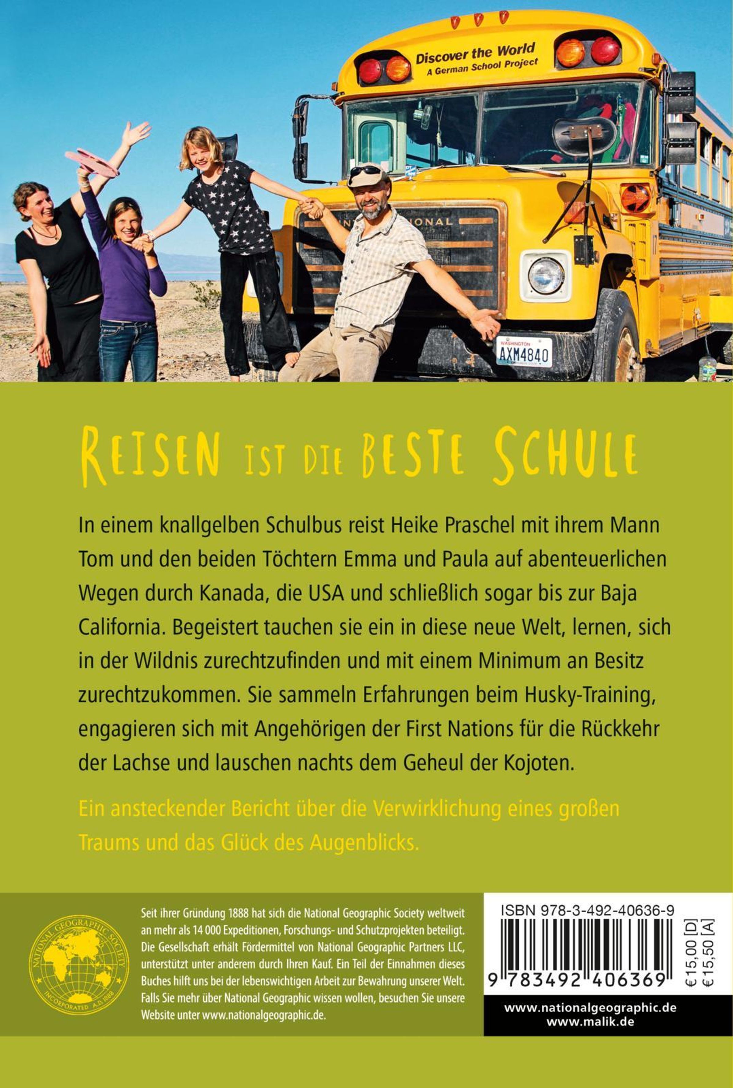 Reisen ist die beste Schule In einem knallgelben Schulbus reist Heike Praschel mit ihrem Mann Tom und den beiden Töchtern Emma und Paula auf abenteuerlichen Wegen durch Kanada, die USA und schließlich sogar bis zur Baja California. Begeistert tauchen sie ein in diese neue Welt, lernen, sich in der Wildnis zurechtzufinden und mit einem Minimum an Besitz zurechtzukommen. Sie sammeln Erfahrungen beim Husky-Training, engagieren sich mit Angehörigen der First Nations für die Rückkehr der Lachse und lauschen nachts dem Geheul der Kojoten. Ein ansteckender Bericht über die Verwirklichung eines großen Traums und das Glück des Augenblicks.