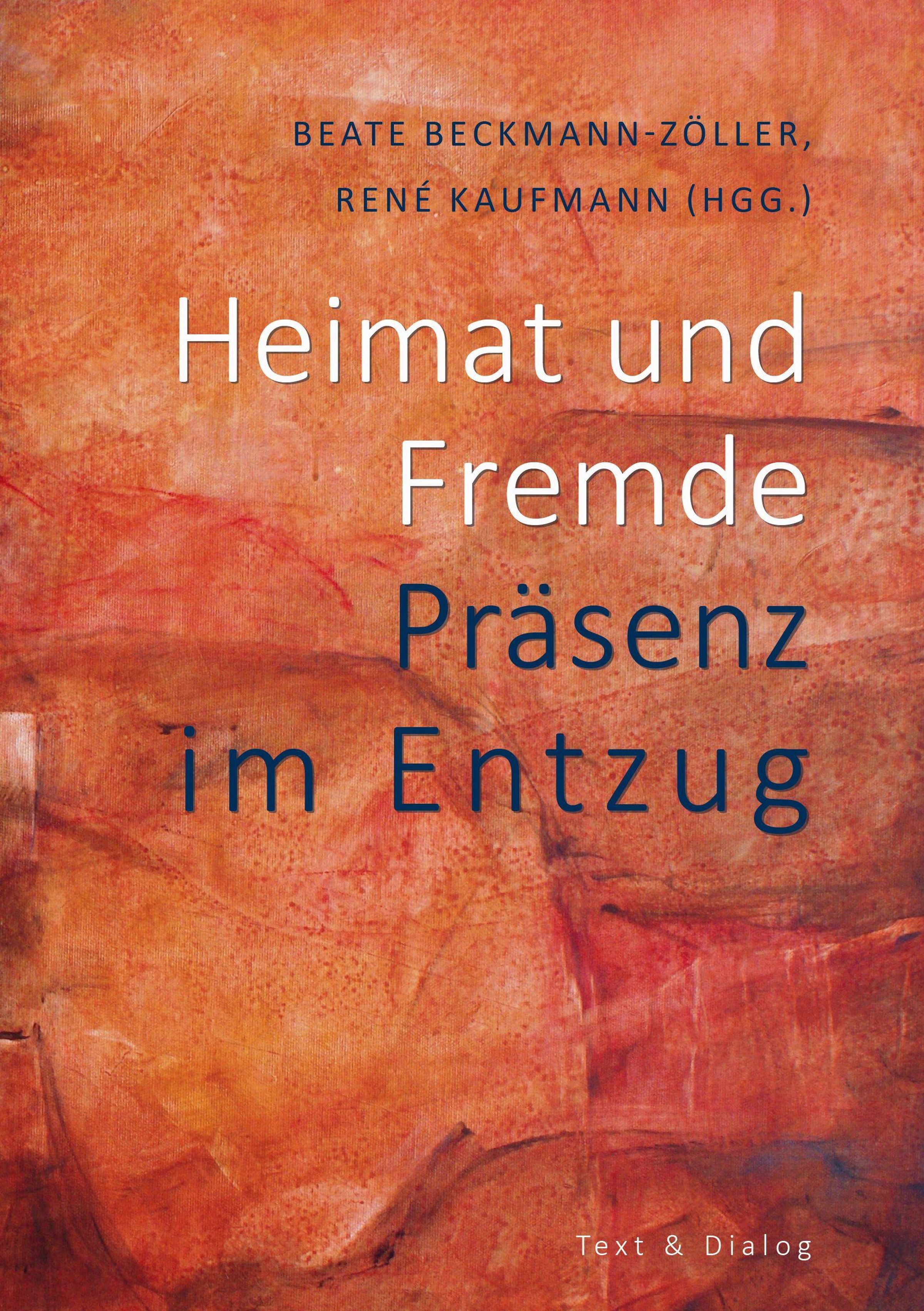 "Heimat und Fremde: Präsenz im Entzug" von Beate Beckmann-Zöller, René Kaufmann. Hintergrund in warmen Rottönen., Buch