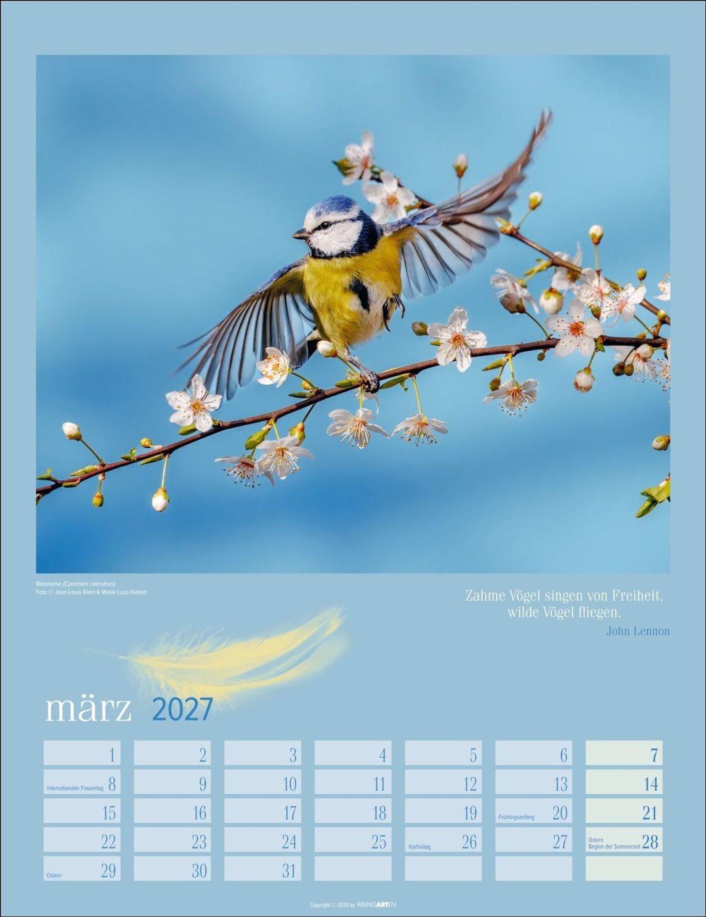 - Wandkalender mit 12 Fotografien heimischer Vogelarten. Tier-Kalender 2027 zum Aufhängen. Foto-Kalender mit Monatsübersicht. 30 x 39 cm