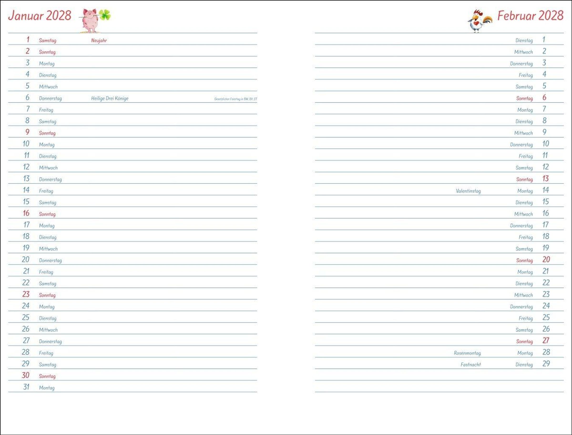 • Familienkalender mit 5 Spalten. Liebevoll illustrierter Buch-Kalender mit Einstecktasche und Schulferien. Terminplaner mit 160 Seiten.