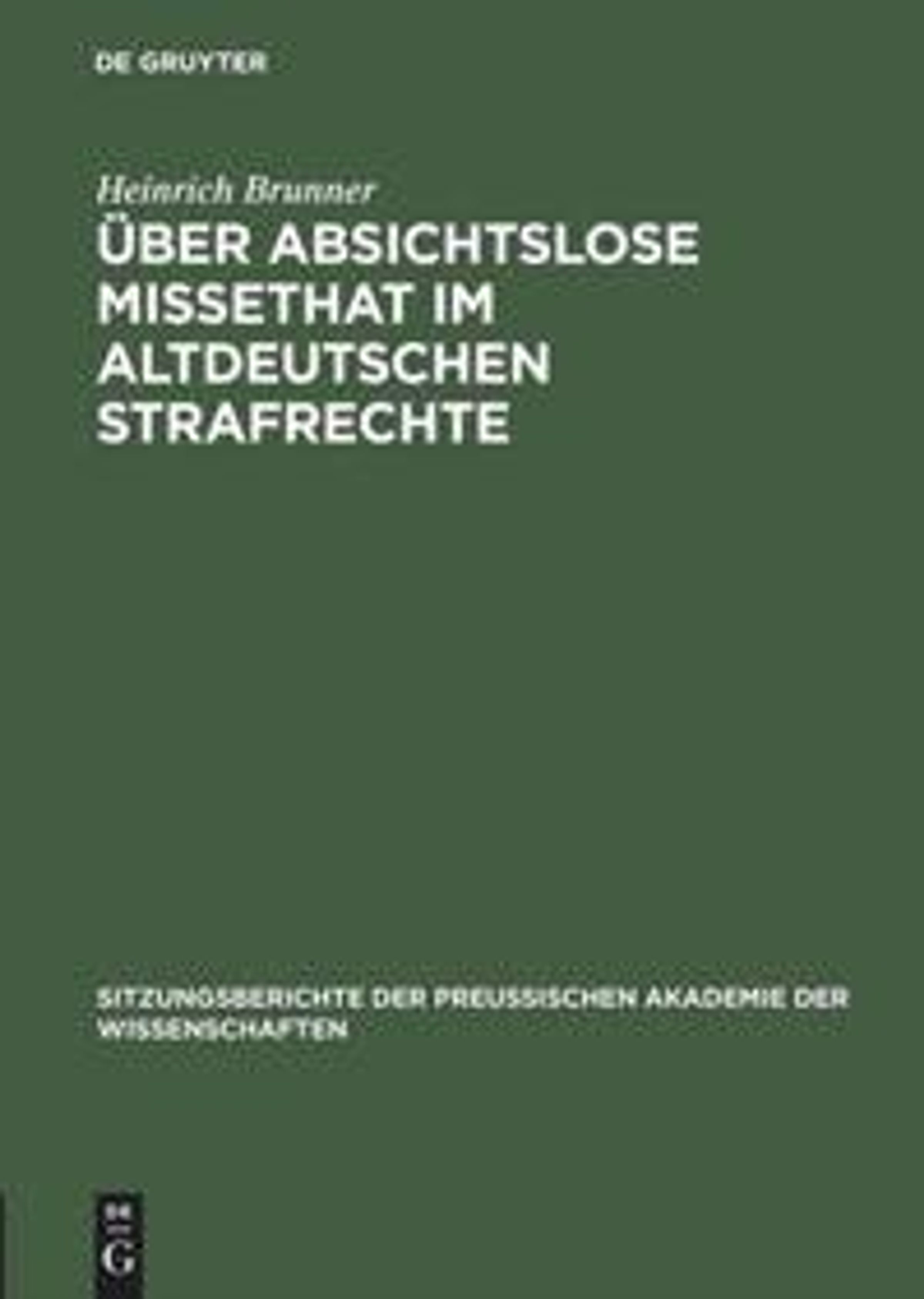 Heinrich Brunner: Über absichtslose Missethat im altdeutschen Strafrechte, Gebunden