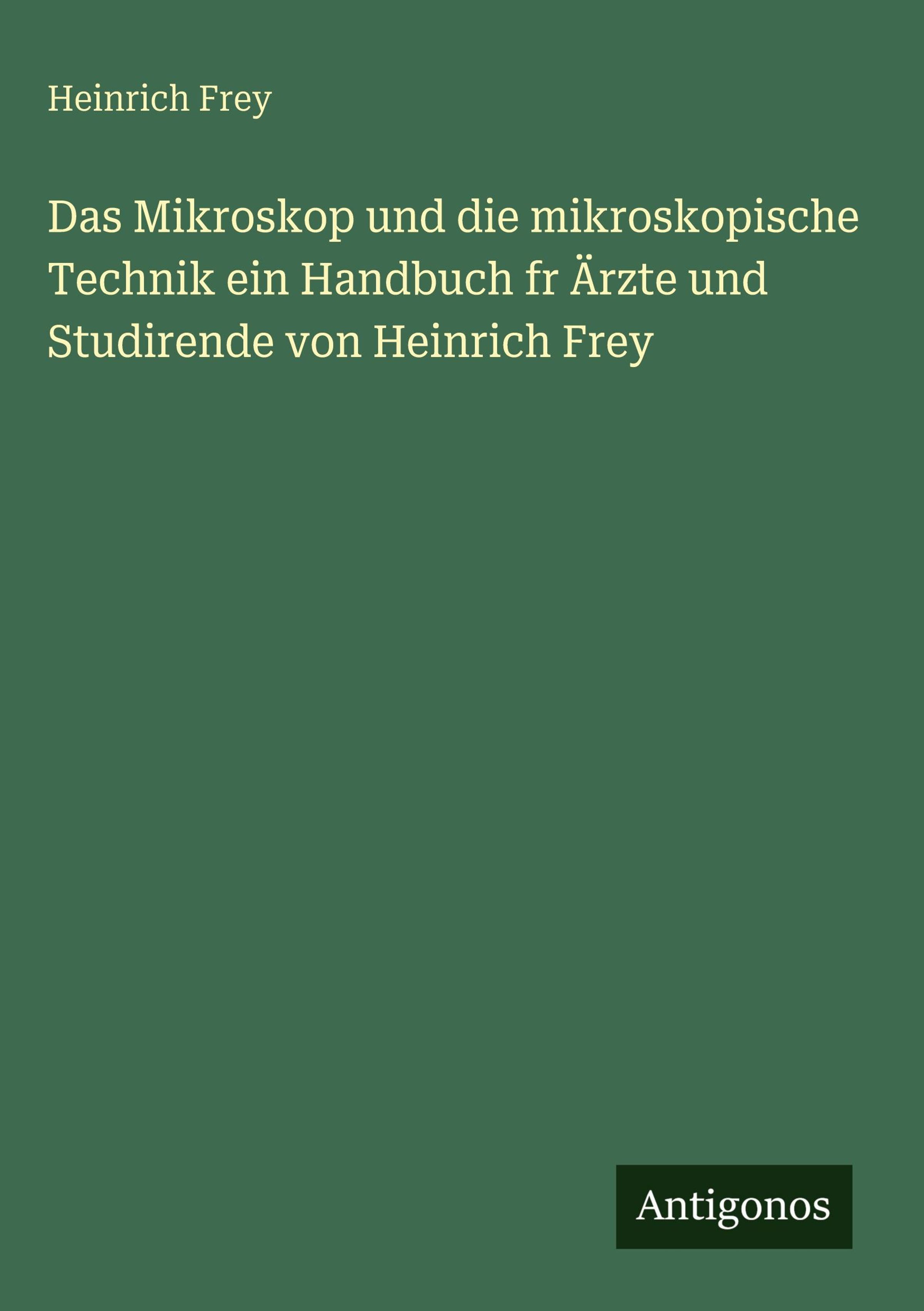 Das Mikroskop und die mikroskopische Technik ein Handbuch fr Ärzte und Studirende von Heinrich Frey