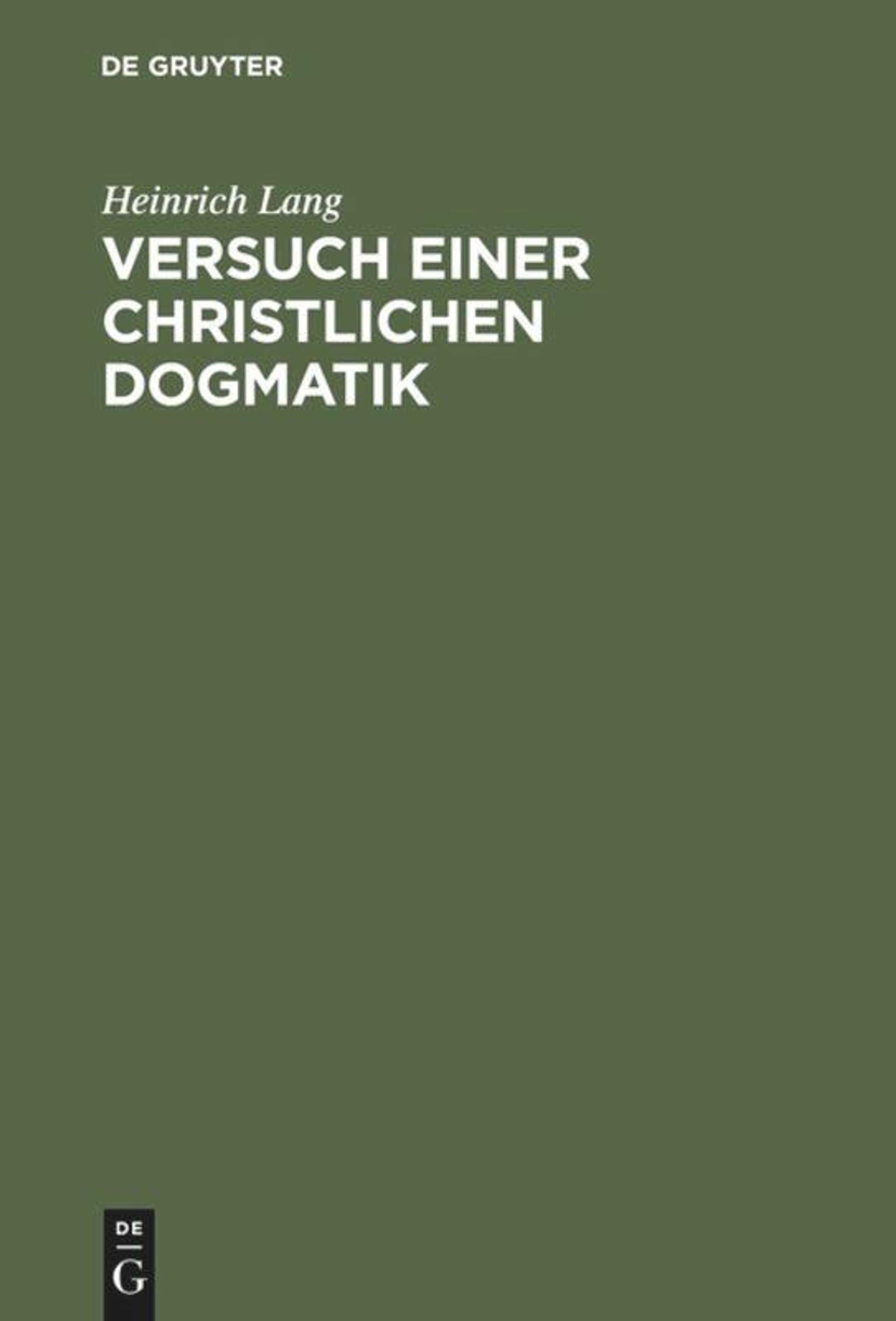 Heinrich Lang: Versuch einer christlichen Dogmatik, Gebunden