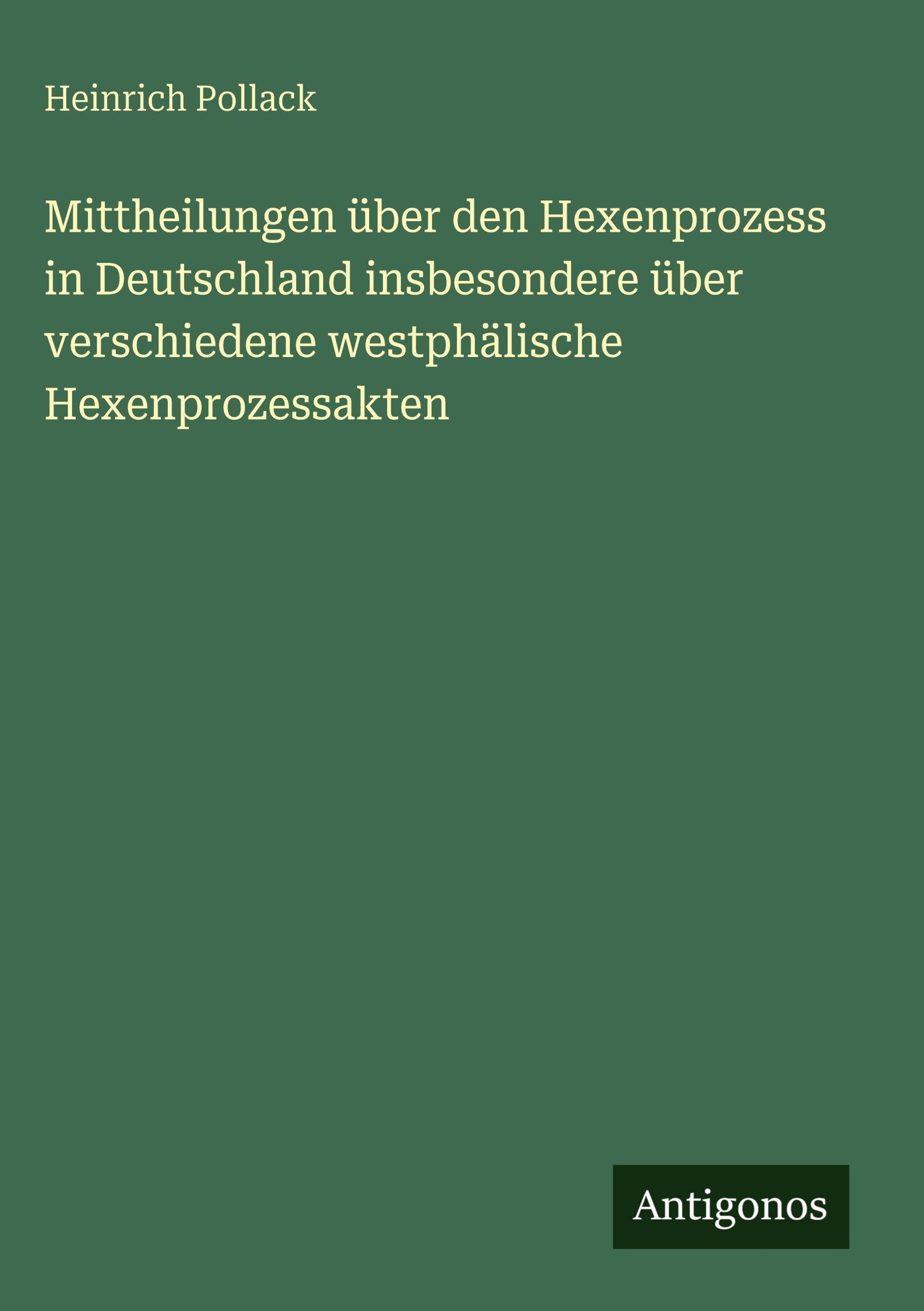 Heinrich Pollack: Mittheilungen über den Hexenprozess in Deutschland insbesondere über verschiedene..., Gebunden