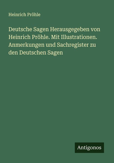 Deutsche Sagen Herausgegeben von Heinrich Pröhle. Mit Illustrationen. Anmerkungen und Sachregister zu den Deutschen Sagen