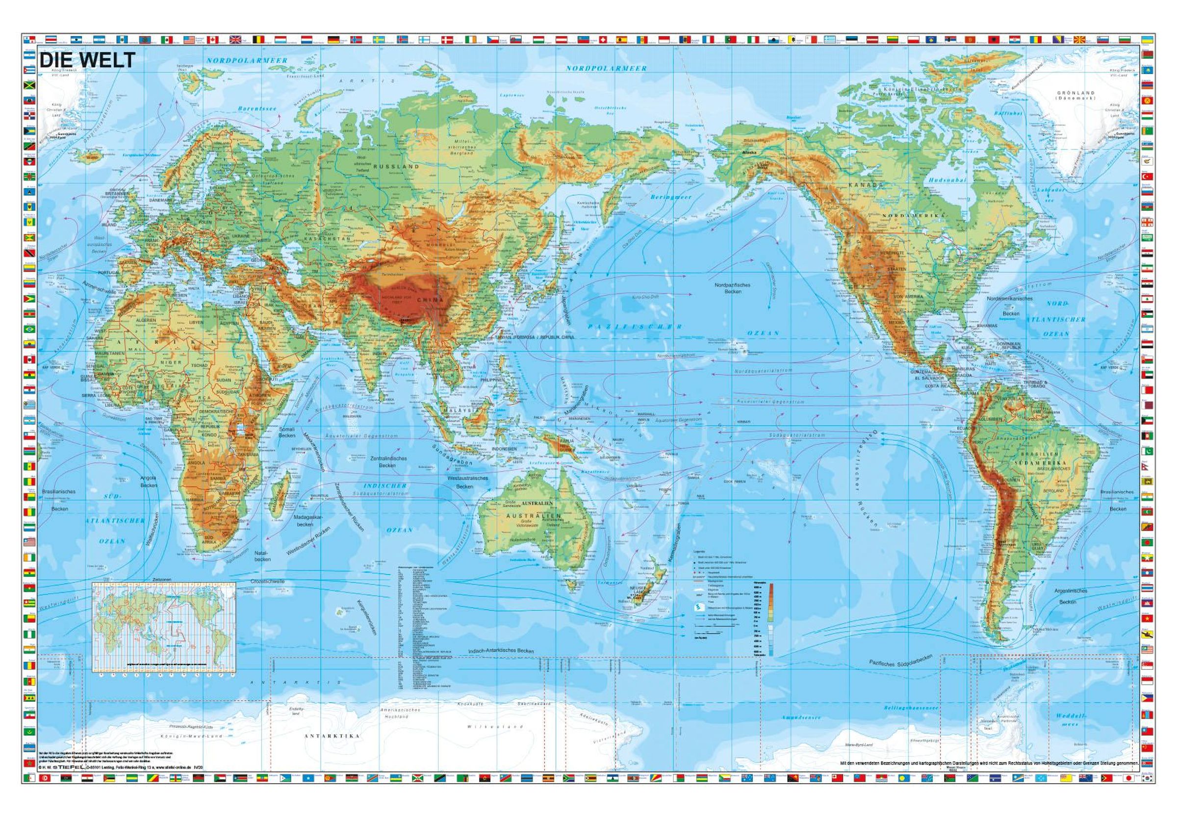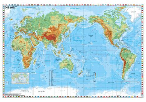 Heinrich Stiefel: Weltkarte pazifikständisch physisch (Karten)