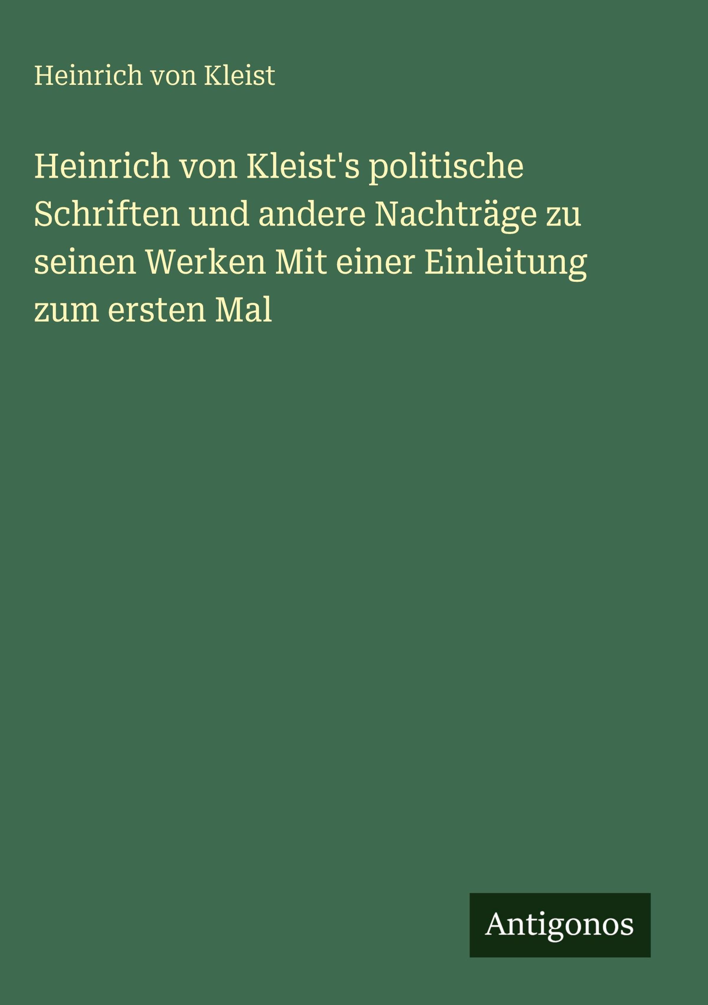 Heinrich von Kleist's politische Schriften und andere Nachträge zu seinen Werken Mit einer Einleitung zum ersten Mal