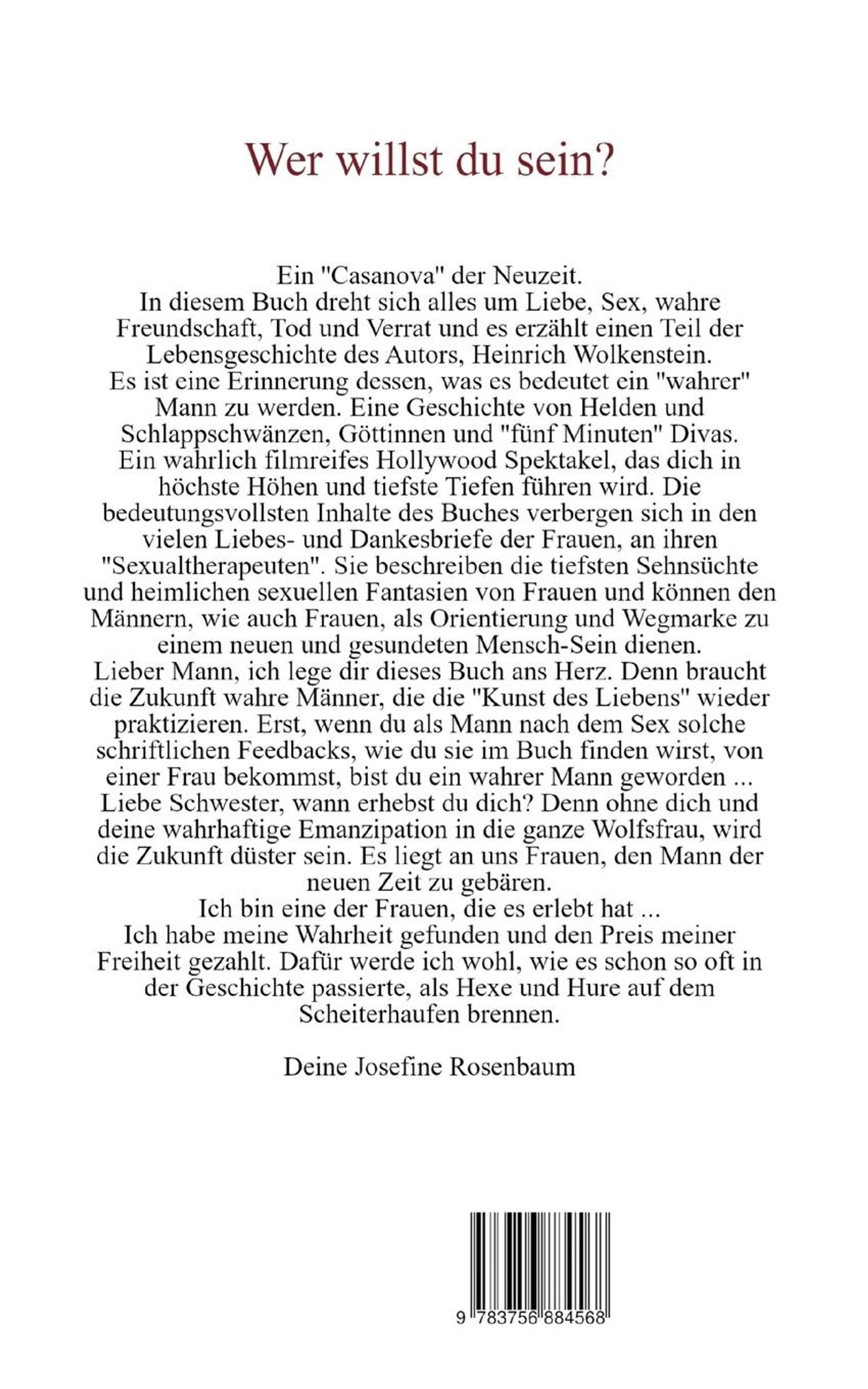 Dieses Buch entstand auf Nachdruck und Anraten dreier Frauen, jene Heinrich Wolkenstein zum Schreiben und Herausbringen seiner Lebensgeschichte motivierten. Der vorliegende Nachlass wird hohen Anklang bei Frauen finden und erzählt die Geschichte wahrer Emanzipation, Sex und Liebe.