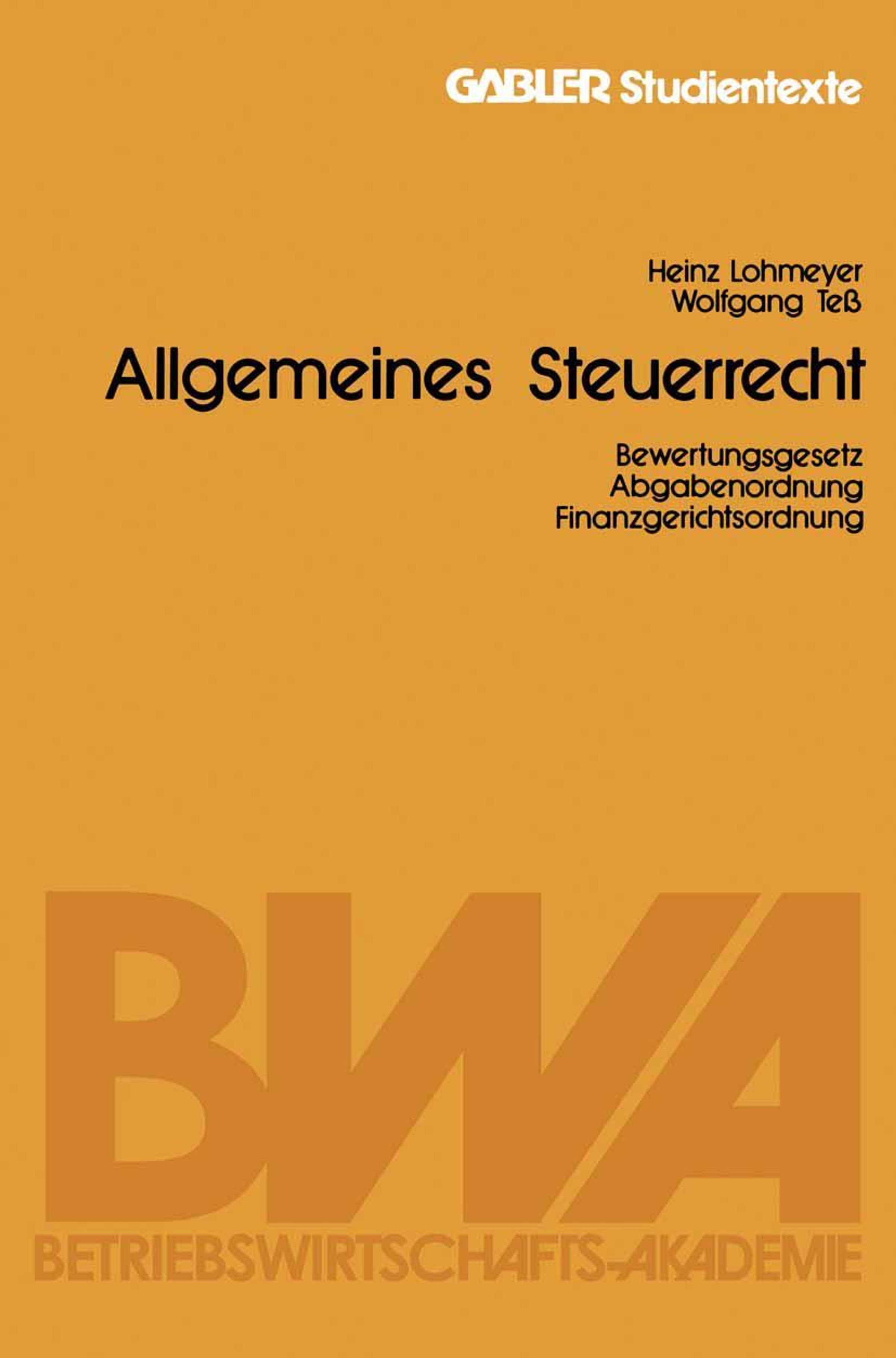 Wolfgang Teß: Allgemeines Steuerrecht, Kartoniert / Broschiert