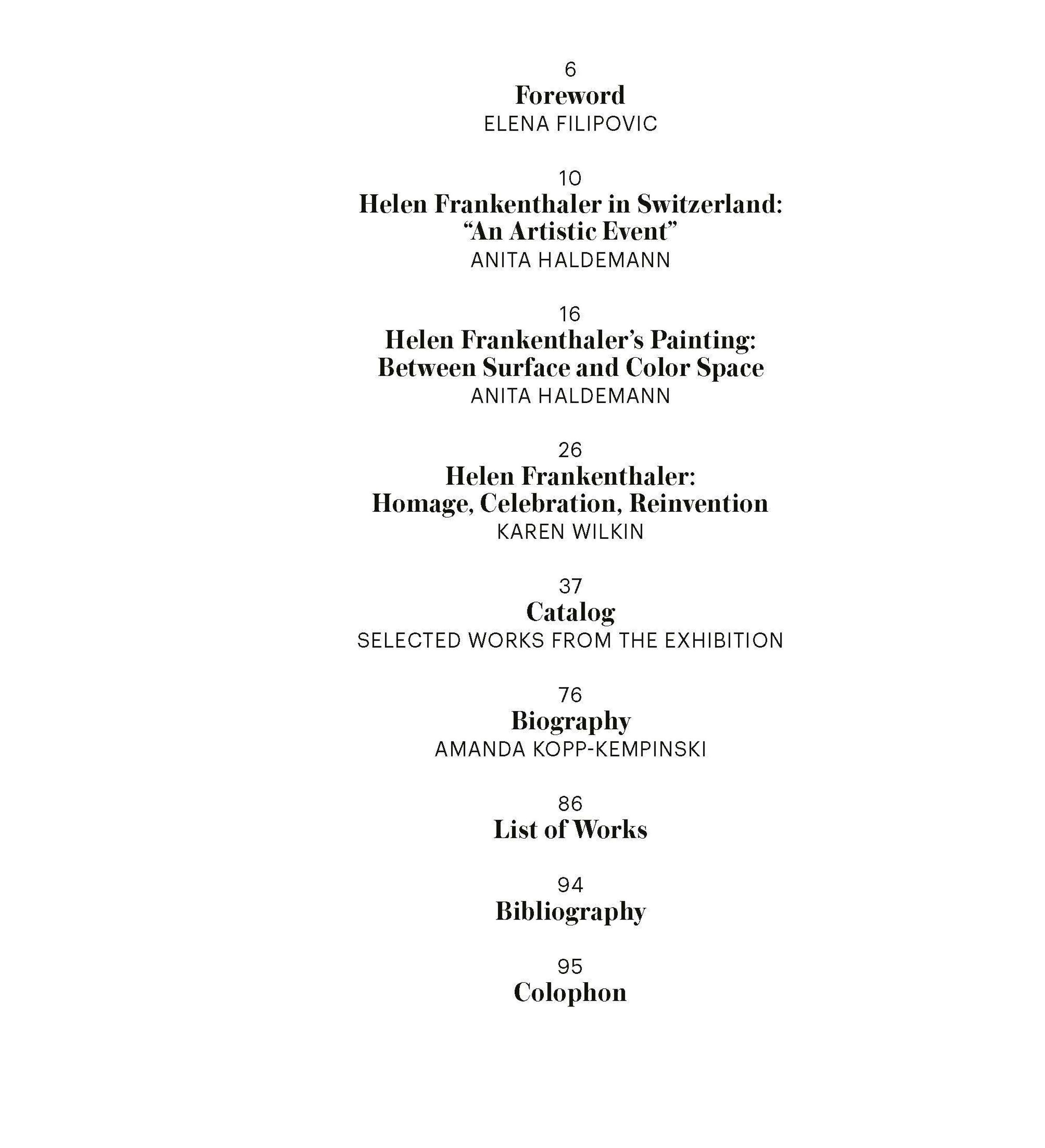 Helen Frankenthaler (1928-2011) was a pioneer of post-war American art. Her experimental work with paint and canvas made her one of the most significant artists of Abstract Expressionism. At the age of just 23, she asserted herself in a male-dominated environment and became a pioneer of colour field painting. Soon, she developed the soak-stain technique that was to become her trademark. The catalogue accompanying the exhibition at Kunstmuseum Basel highlights fifty years of innovative painting, focusing especially on Frankenthaler's intense engagement with art history.