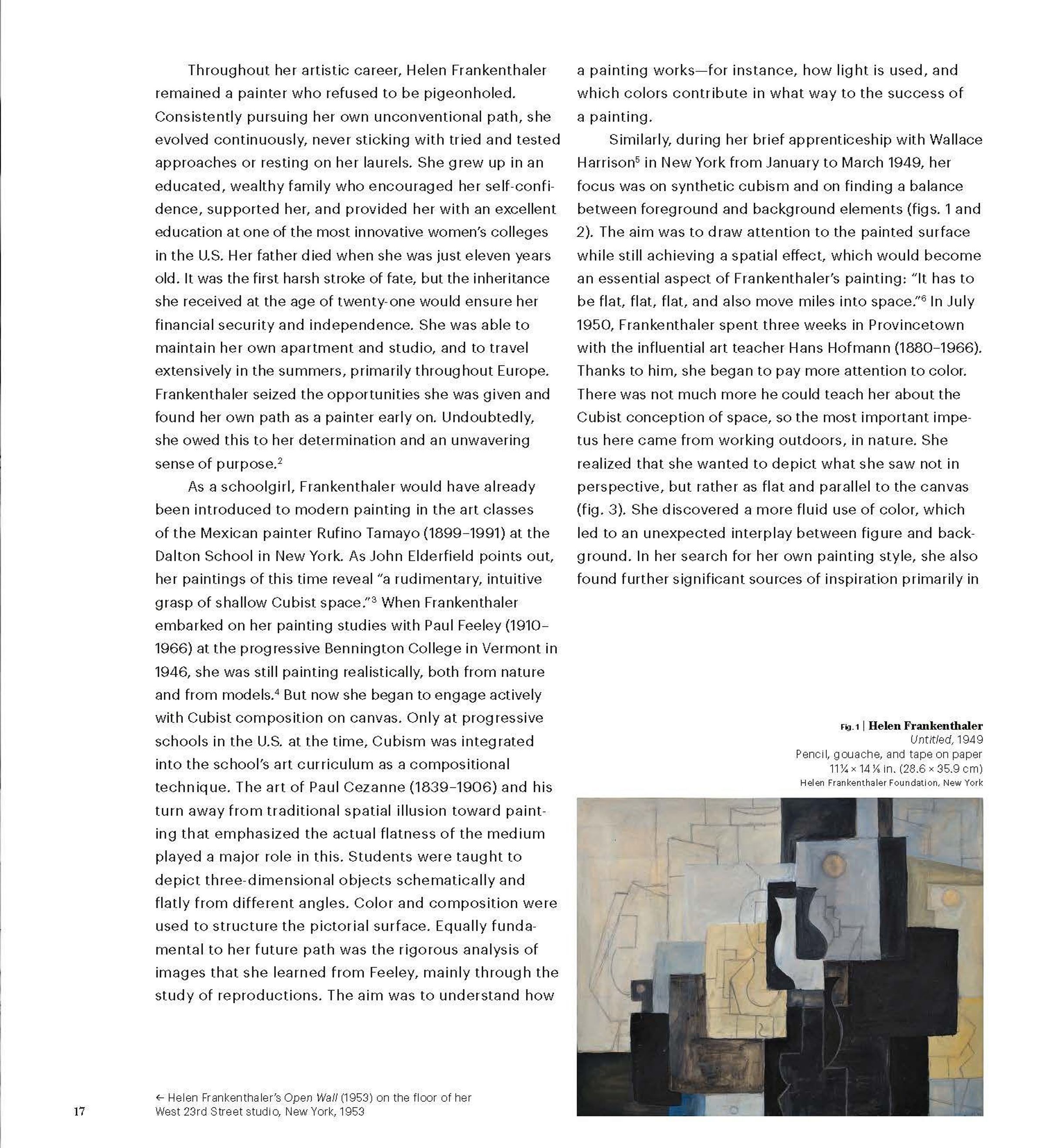 - First publication in which Helen Frankenthaler's works are compared and contrasted with those of her role models - including Édouard Manet, André Derain and Marie Laurencin