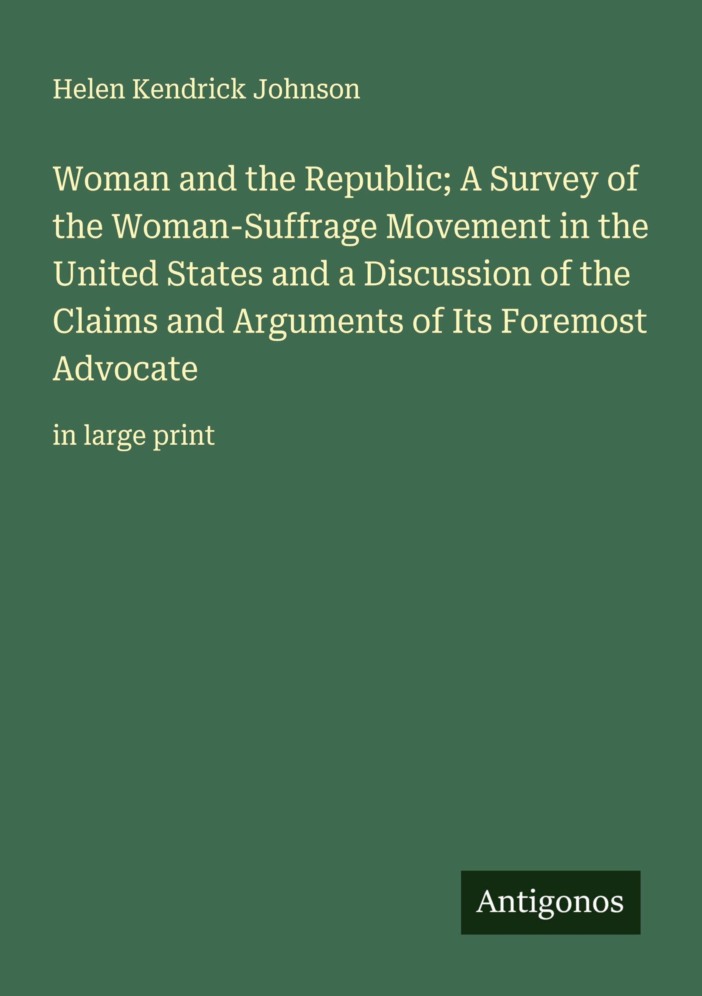 Woman and the Republic; A Survey of the Woman-Suffrage Movement in the United States and a Discussion of the Claims and Arguments of Its Foremost Advocate
