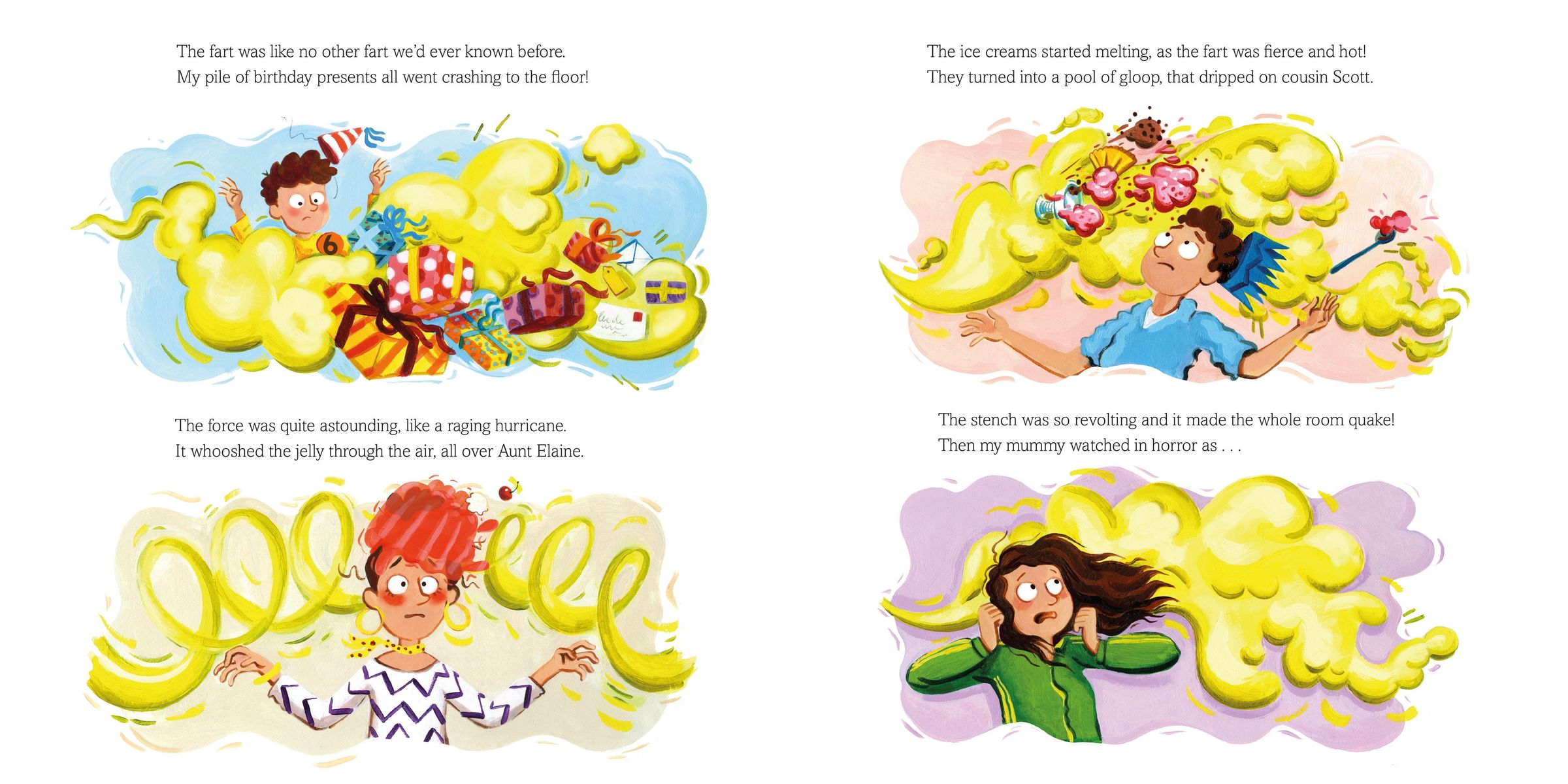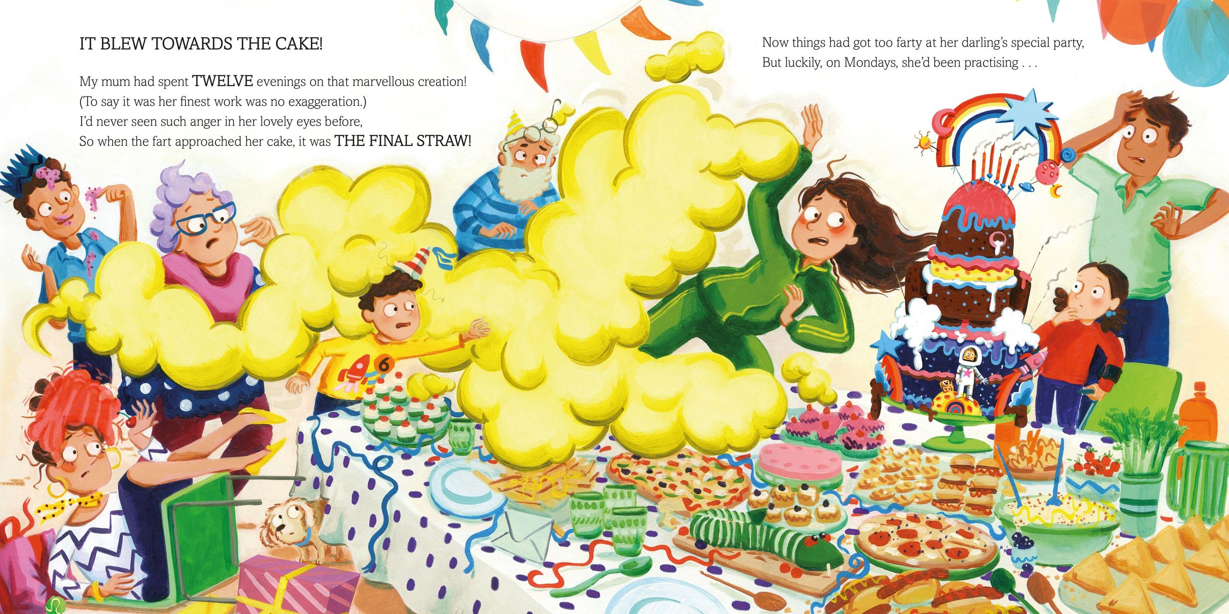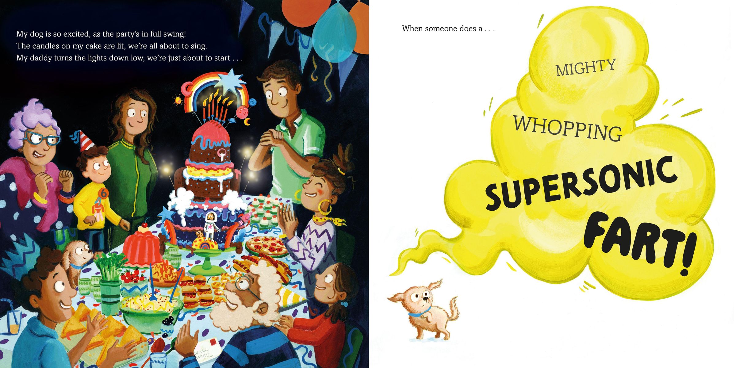 Everyone has arrived for Jake's party: Grandma, Grandad, even Jake's cute puppy, Luna. Mum's made the most marvellous cake and the festivities are in full swing. But then someone does a stinker of a fart and everything starts to go wrong. Can disaster be averted?