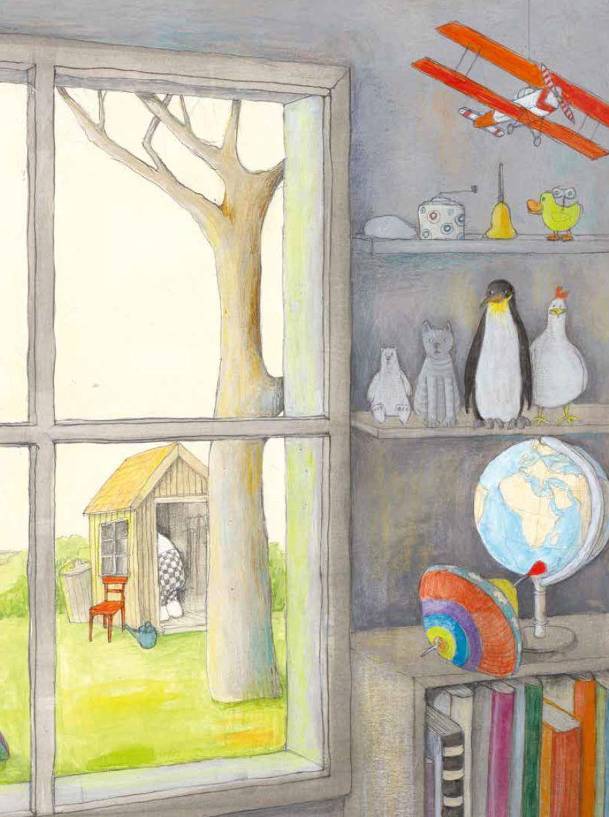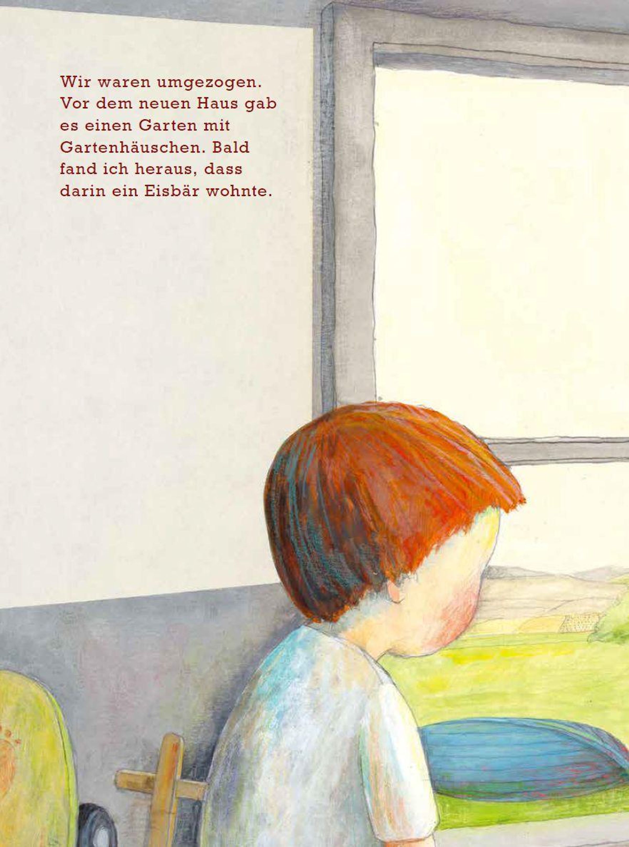 Ich bin umgezogen, und in meinem Gartenhäuschen wohnt ein Eisbär. Er sammelt vieles, bald hat er auch ein Glücksbuch. Je größer der Glücksmoment, desto größer der bunte Punkt im Buch. Drachensteigen ist ein gelber Punkt, hoch oben im Baum sitzen und Kirschen essen ein tiefroter, Schlittschuhlaufen ist türkis. Eines Tages ist er weg, der Eisbär, doch sein Glücksbuch hat er mir dagelassen, zusammen mit den Stiften. Meine neuen Freunde und ich können nun weitersammeln. Der Alltag birgt viele Glücksmomente. Wie gut, mit liebevollen Sätzen und detailreichen Bildern daran erinnert zu werden.