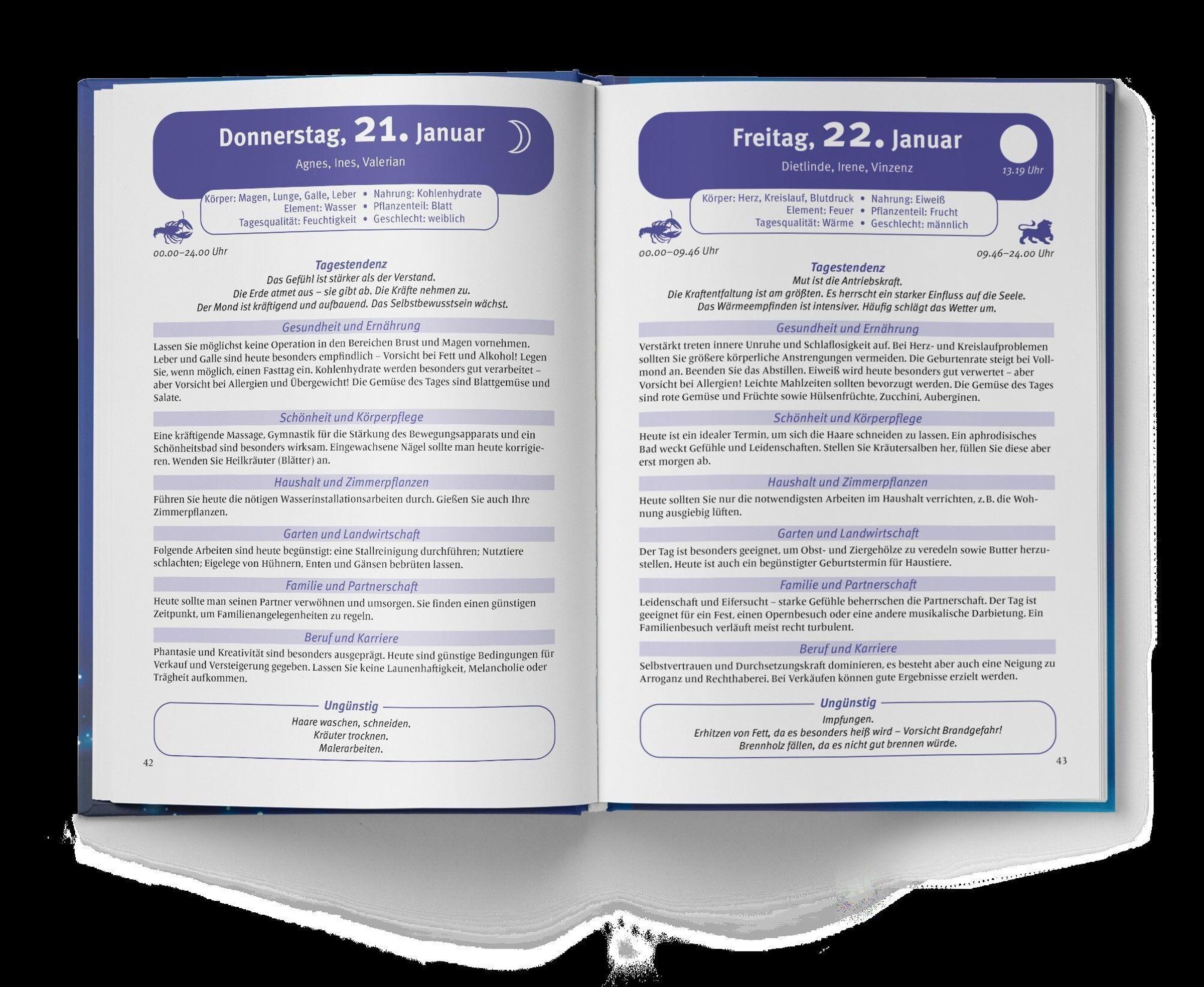 - Tag für Tag - Gesundheit & Schönheit - Haus & Garten - Partnerschaft & Beruf - Ganzseitige Informationen für jeden Tag - Mit Jahres-Mondkalender und Mondtagebuch zum Herausnehmen - Kalenderbuch 17,0 x 24,0 cm