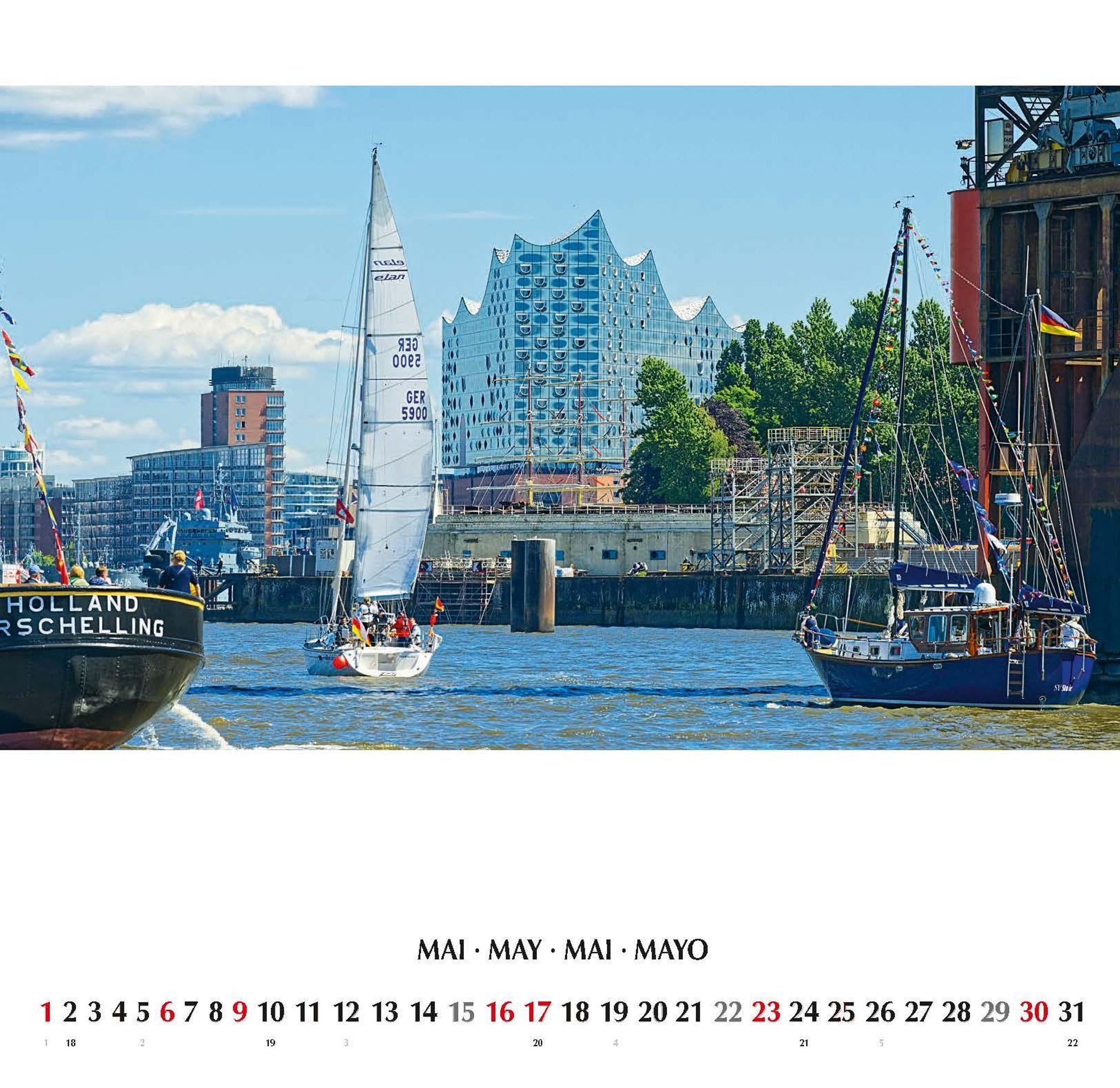 Dieser schöne Hamburg Kalender ist ein Muss für jeden Hamburg-Fan! Mit den Augen bekannter Hamburger Fotografen sehen Sie die schöne Hansestadt aus immer wieder neuen und besonderen Blickwinkeln. Auf der Rückseite ist jedes Kalender-Bild mit einer 4-sprachigen (deutsch, englisch, spanisch, französisch) Erklärung noch einmal abgebildet. Sie werden Ihre Freude haben! Größe: 43 x 42 cm; Fotografen: H. Bias, D. Frings, M. Hernandez, M. Pasdzior, U. Steffens. Alle Kalender unter: www. elbe-verlag-hamburg. de