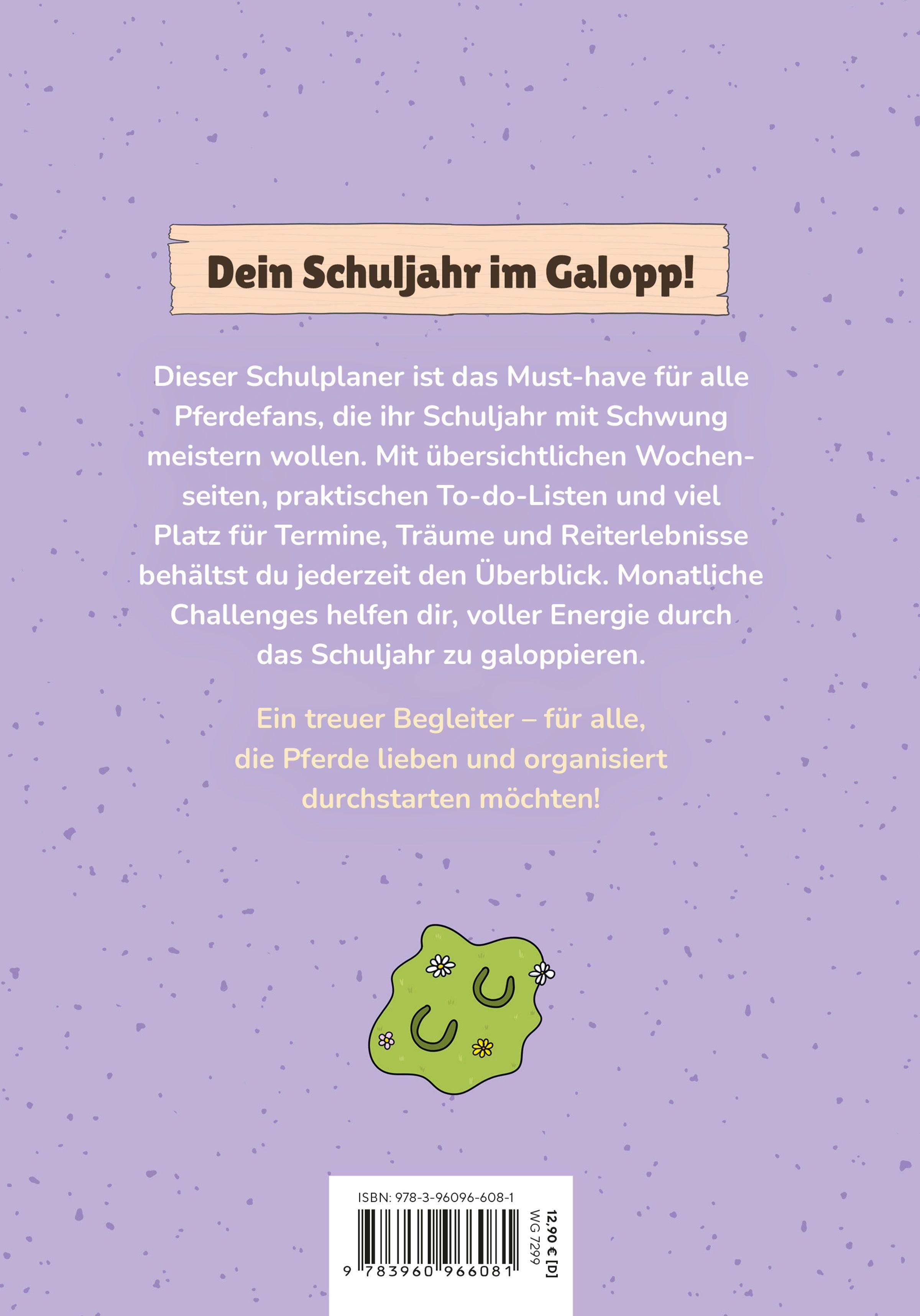 Endlich! Der erste Schulplaner von Hella Gabbert ist genau das Richtige für alle, die Pferde lieben und organisiert durchstarten wollen. Mit liebevollem Pferde-Design, praktischen Wochen- und Notenübersichten sowie To-do-Listen galoppierst du voller Elan ins Schuljahr! Um die Motivation aufrechtzuerhalten, gibt es monatliche Challenges. Mit viel Platz für Termine, Träume und Reiterlebnisse wird der Planer zum treuen Begleiter durch das Schuljahr.