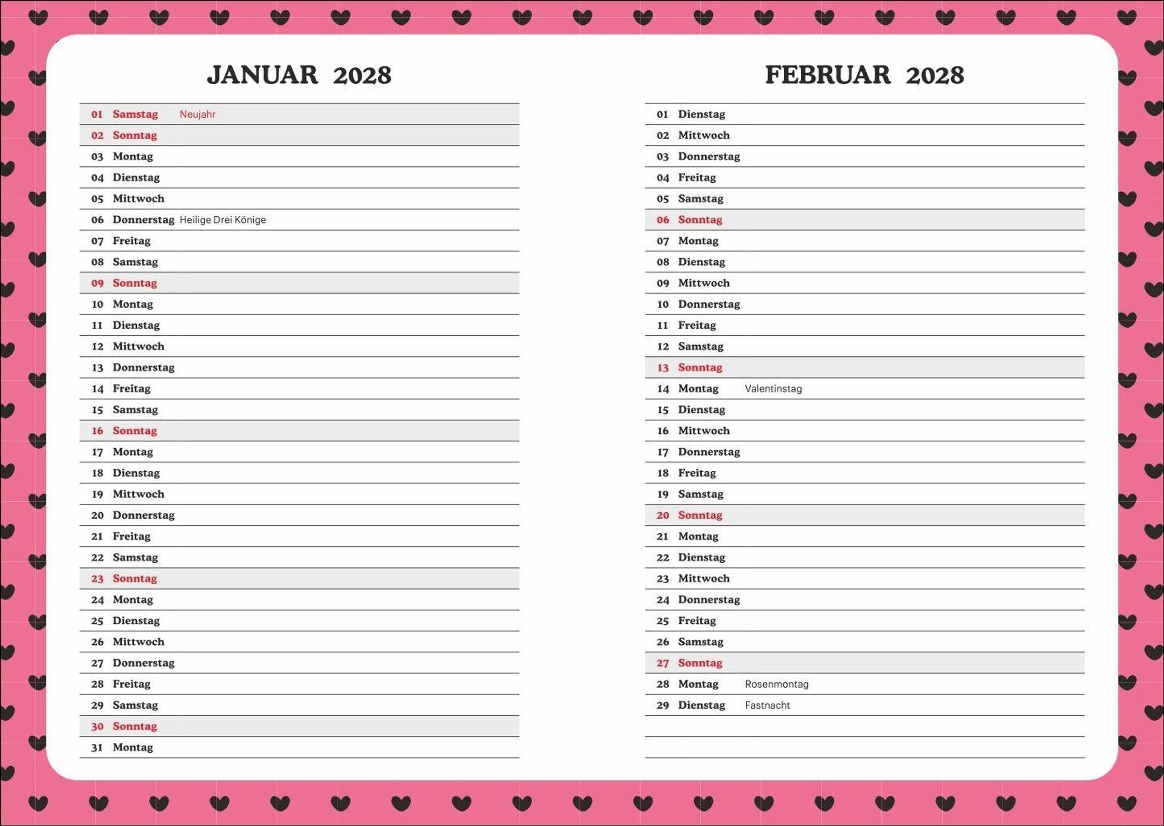 Terminplaner im Format A5 für den bequemen Überblick: Handlicher Taschenkalender mit einer Doppelseite Platz pro Woche und praktischer Monatsübersicht