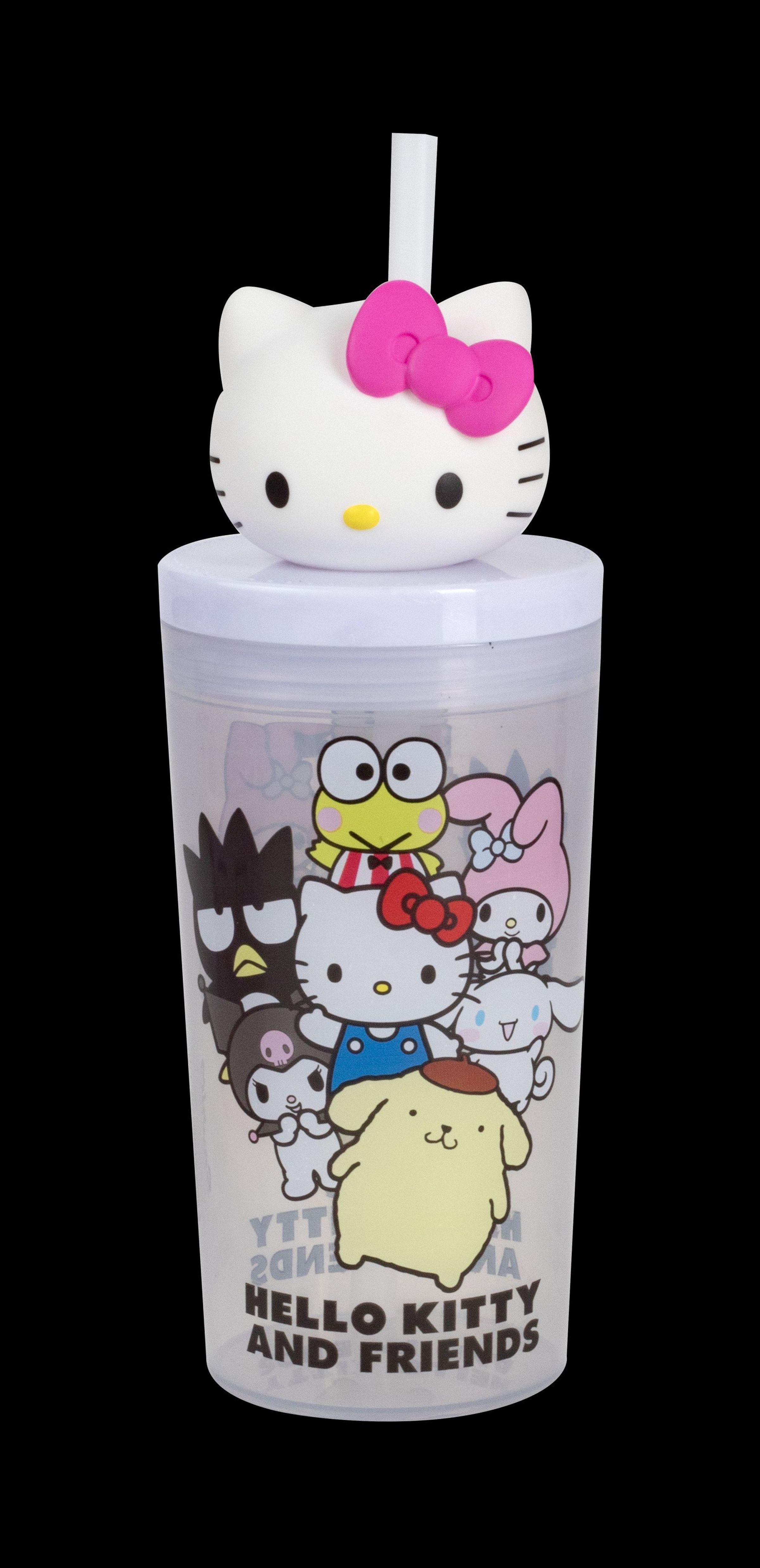 Dieser schöne Hello Kitty Trinkbecher bringt Spaß in die Trinkroutine Ihres Kindes! Ausgestattet mit einer verspielten 3D Hello Kitty Figur auf dem Deckel, zieht der Becher sofort die Aufmerksamkeit auf sich. Der variable Strohhalm macht das Trinken einfach und praktisch, perfekt für jeden Haushalt. Ideal für begeisterte Hello Kitty Fans und kleine Hände zum sicheren Greifen lernen.