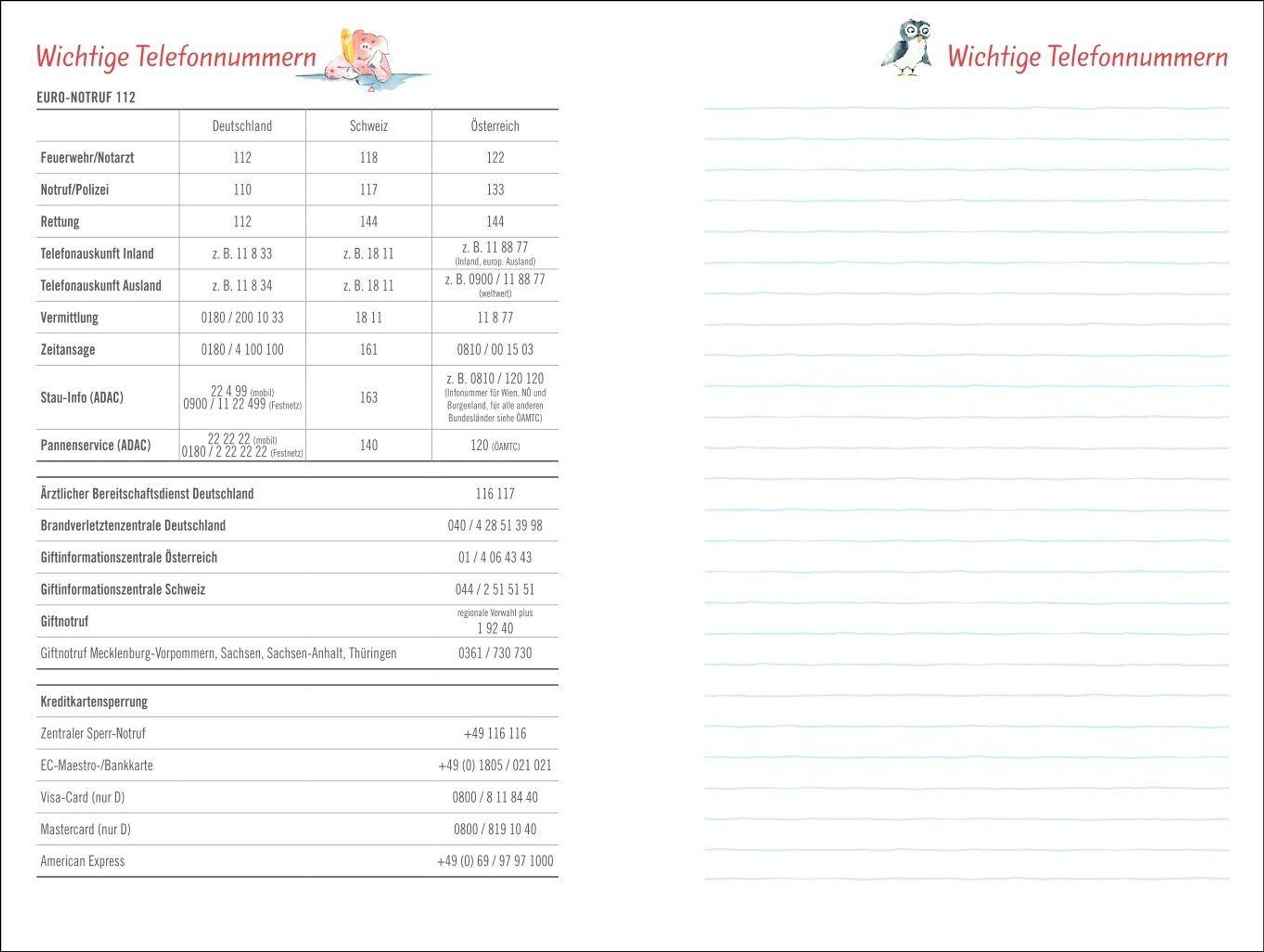Im Rucksack oder auf dem Küchentisch: Kompakter Terminplaner im A6-Format mit Wochenübersicht und bezaubernden Illustrationen von Helme Heines drei Freunden