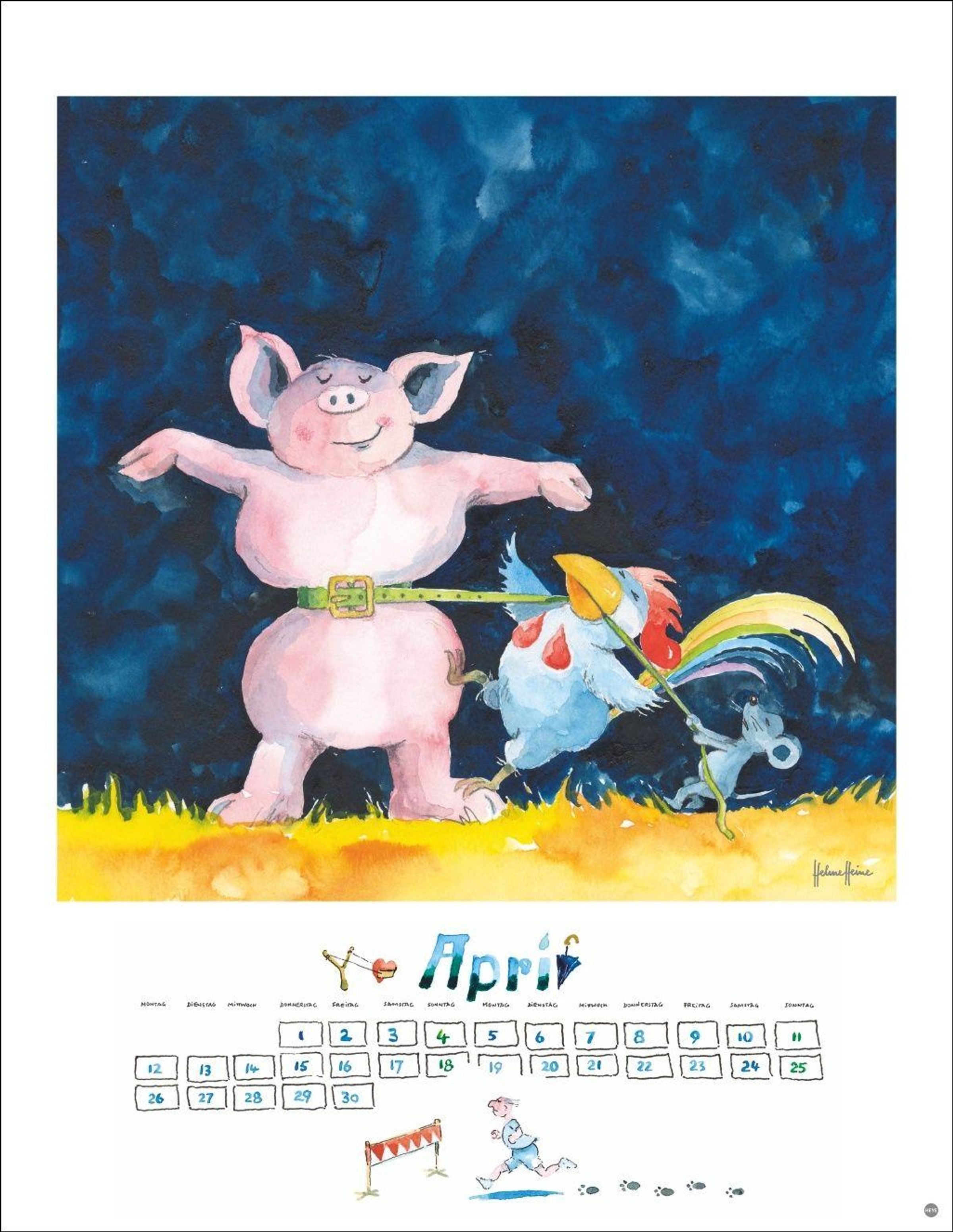 • Liebevoll illustrierter Wandkalender von Helme Heine mit 12 neuen, unveröffentlichten Motiven. 34 x 44 cm.
